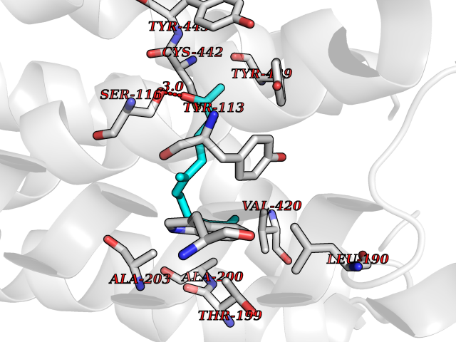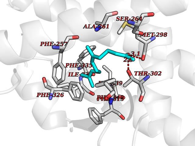 Target general information Gen name CHRM4 Organism Homo sapiens (Human) Uniprot ID TTD ID Synonyms M4 receptor; CHRM4 Protein family G-protein coupled receptor 1 family, Muscarinic acetylcholine receptor subfamily, CHRM4 sub-subfamily Biochemical class GPCR rhodopsin Function The muscarinic acetylcholine receptor mediates various cellular responses, including inhibition of adenylate cyclase, breakdown of phosphoinositides and modulation of potassium channels through the action of G proteins. Primary transducing effect is inhibition of adenylate cyclase. Related diseases Leukodystrophy, hypomyelinating, 15 (HLD15) [MIM:617951]: An autosomal recessive disorder characterized by hypomyelinating leukodystrophy with thinning of the corpus callosum. Clinical features include motor and cognitive impairment appearing in the first or second decade of life, dystonia, ataxia, spasticity, and dysphagia. Most patients develop severe optic atrophy, and some have hearing loss. {ECO:0000269|PubMed:29576217}. The disease may be caused by variants affecting the gene represented in this entry. Drugs (DrugBank ID) DB03128; DB08897; DB05752; DB00321; DB00543; DB01238; DB14185; DB00572; DB00767; DB01019; DB00835; DB00411; DB01239; DB00568; DB00363; DB00496; DB01151; DB09167; DB01142; DB00366; DB09194; DB06702; DB00986; DB06787; DB11181; DB00725; DB00424; DB00458; DB01625; DB01221; DB00408; DB00934; DB00454; DB06709; DB00940; DB01403; DB00340; DB00622; DB00540; DB00334; DB00715; DB01085; DB00387; DB01069; DB00777; DB12278; DB01224; DB11855; DB13581; DB00747; DB01591; DB00342; DB11235; DB01409; DB01036; DB00376; DB09089; DB00726; DB00809; DB09076; DB09185; DB00246 Interacts with NA EC number NA Uniprot keywords 3D-structure; Cell membrane; Disulfide bond; G-protein coupled receptor; Glycoprotein; Membrane; Phosphoprotein; Postsynaptic cell membrane; Proteomics identification; Receptor; Reference proteome; Synapse; Transducer; Transmembrane; Transmembrane helix Protein physicochemical properties Chain ID A,B Molecular weight (Da) 32545.4 Length 287 Aromaticity 0.14 Instability index 30.63 Isoelectric point 9.34 Charge (pH=7) 11.91 3D Binding mode Sequence HNRYETVEMVFIATVTGSLSLVTVVGNILVMLSIKVNRQLQTVNNYFLFSLACADLIIGAFSMNLYTVYIIKGYWPLGAVVCDLWLALDYVVSNASVMNLLIISFDRYFCVTKPLTYPARRTTKMAGLMIAAAWVLSFVLWAPAILFWQFVVGKRTVPDNQCFIQFLSNPAVTFGTAIAAFYLPVVIMTVLYIHISLASRSRVQMAARERKVTRTIFAILLAFILTWTPYNVMVLVNTFCQSCIPDTVWSIGYWLCYVNSTINPACYALCNATFKKTFRHLLLCQYR Hydrogen bonds contact Hydrophobic contact | ||||