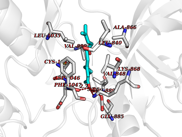 Target general information Gen name KDR Organism Homo sapiens (Human) Uniprot ID TTD ID Synonyms VEGFR2; VEGFR-2; VEGF-2 receptor; Protein-tyrosine kinase receptor flk-1; Kinase insert domain receptor; Fetal liver kinase 1; FLK1; FLK-1; CD309 Protein family Protein kinase superfamily, Tyr protein kinase family, CSF-1/PDGF receptor subfamily Biochemical class Kinase Function Plays an essential role in the regulation of angiogenesis, vascular development, vascular permeability, and embryonic hematopoiesis. Promotes proliferation, survival, migration and differentiation of endothelial cells. Promotes reorganization of the actin cytoskeleton. Isoforms lacking a transmembrane domain, such as isoform 2 and isoform 3, may function as decoy receptors for VEGFA, VEGFC and/or VEGFD. Isoform 2 plays an important role as negative regulator of VEGFA- and VEGFC-mediated lymphangiogenesis by limiting the amount of free VEGFA and/or VEGFC and preventing their binding to FLT4. Modulates FLT1 and FLT4 signaling by forming heterodimers. Binding of vascular growth factors to isoform 1 leads to the activation of several signaling cascades. Activation of PLCG1 leads to the production of the cellular signaling molecules diacylglycerol and inositol 1,4,5-trisphosphate and the activation of protein kinase C. Mediates activation of MAPK1/ERK2, MAPK3/ERK1 and the MAP kinase signaling pathway, as well as of the AKT1 signaling pathway. Mediates phosphorylation of PIK3R1, the regulatory subunit of phosphatidylinositol 3-kinase, reorganization of the actin cytoskeleton and activation of PTK2/FAK1. Required for VEGFA-mediated induction of NOS2 and NOS3, leading to the production of the signaling molecule nitric oxide (NO) by endothelial cells. Phosphorylates PLCG1. Promotes phosphorylation of FYN, NCK1, NOS3, PIK3R1, PTK2/FAK1 and SRC. Tyrosine-protein kinase that acts as a cell-surface receptor for VEGFA, VEGFC and VEGFD. Related diseases Hemangioma, capillary infantile (HCI) [MIM:602089]: A condition characterized by dull red, firm, dome-shaped hemangiomas, sharply demarcated from surrounding skin, usually presenting at birth or occurring within the first two or three months of life. They result from highly proliferative, localized growth of capillary endothelium and generally undergo regression and involution without scarring. {ECO:0000269|PubMed:11807987, ECO:0000269|PubMed:18931684}. Disease susceptibility is associated with variants affecting the gene represented in this entry.; DISEASE: Plays a major role in tumor angiogenesis. In case of HIV-1 infection, the interaction with extracellular viral Tat protein seems to enhance angiogenesis in Kaposi's sarcoma lesions. Drugs (DrugBank ID) DB04727; DB07514; DB07528; DB06938; DB07326; DB06626; DB08875; DB04849; DB05198; DB12147; DB12307; DB12010; DB11679; DB06101; DB09078; DB06080; DB06595; DB07537; DB07183; DB07333; DB07334; DB07274; DB09079; DB08519; DB08042; DB16265; DB06589; DB05931; DB08901; DB15822; DB05984; DB05578; DB08896; DB14840; DB06436; DB00398; DB01268; DB05075; DB11800; DB04879; DB05146; DB05014 Interacts with P35916; O60565; P98160; PRO_0000391621 [P98160]; PRO_0000391622 [P98160]; P17301; P35968; P09382; P08581; P16333; O14786; O75340; P09619; P29350; Q12913; P12931; P15692; P15692-4; P49767; Q9MYV3-3 EC number EC 2.7.10.1 Uniprot keywords 3D-structure; Alternative splicing; Angiogenesis; ATP-binding; Cell junction; Cell membrane; Cytoplasm; Cytoplasmic vesicle; Developmental protein; Differentiation; Disulfide bond; Endoplasmic reticulum; Endosome; Glycoprotein; Host-virus interaction; Immunoglobulin domain; Kinase; Membrane; Nucleotide-binding; Nucleus; Phosphoprotein; Proteomics identification; Receptor; Reference proteome; Repeat; Secreted; Signal; Transferase; Transmembrane; Transmembrane helix; Tyrosine-protein kinase; Ubl conjugation Protein physicochemical properties Chain ID A Molecular weight (Da) 33863.9 Length 296 Aromaticity 0.1 Instability index 40.01 Isoelectric point 8.5 Charge (pH=7) 4.59 3D Binding mode Sequence HCERLPYDASKWEFPRDRLKLGKPLGRGAFGQVIEADAFGIDKTATCRTVAVKMLKEGATHSEHRALMSELKILIHIGHHLNVVNLLGACTKPGGPLMVIVEFCKFGNLSTYLRSKRNEFVPYYKDFLTLEHLICYSFQVAKGMEFLASRKCIHRDLAARNILLSEKNVVKICDFGLARDIYKDPDYVRKGDARLPLKWMAPETIFDRVYTIQSDVWSFGVLLWEIFSLGASPYPGVKIDEEFCRRLKEGTRMRAPDYTTPEMYQTMLDCWHGEPSQRPTFSELVEHLGNLLQANA Hydrogen bonds contact Hydrophobic contact | ||||