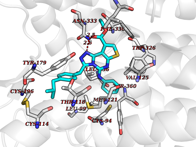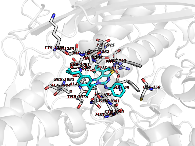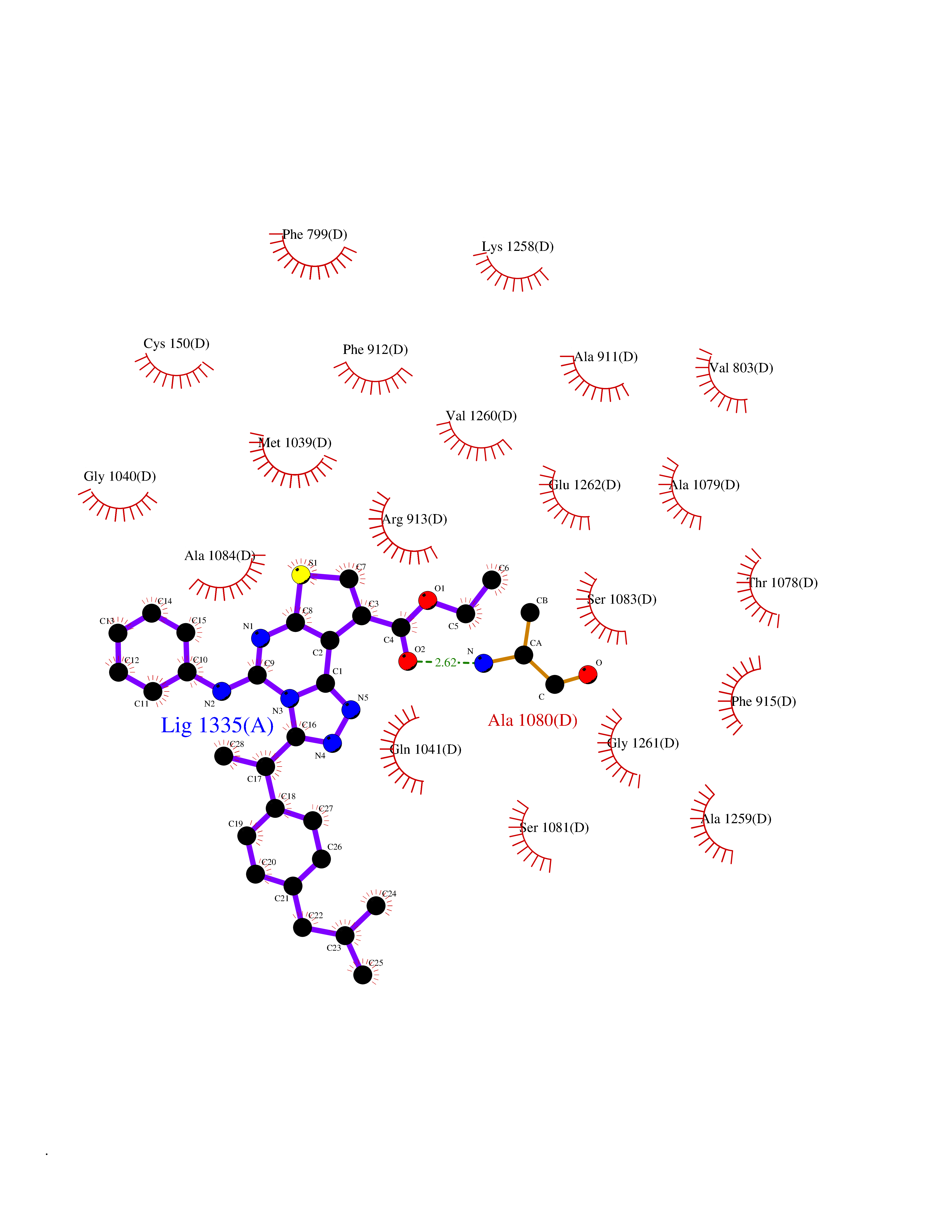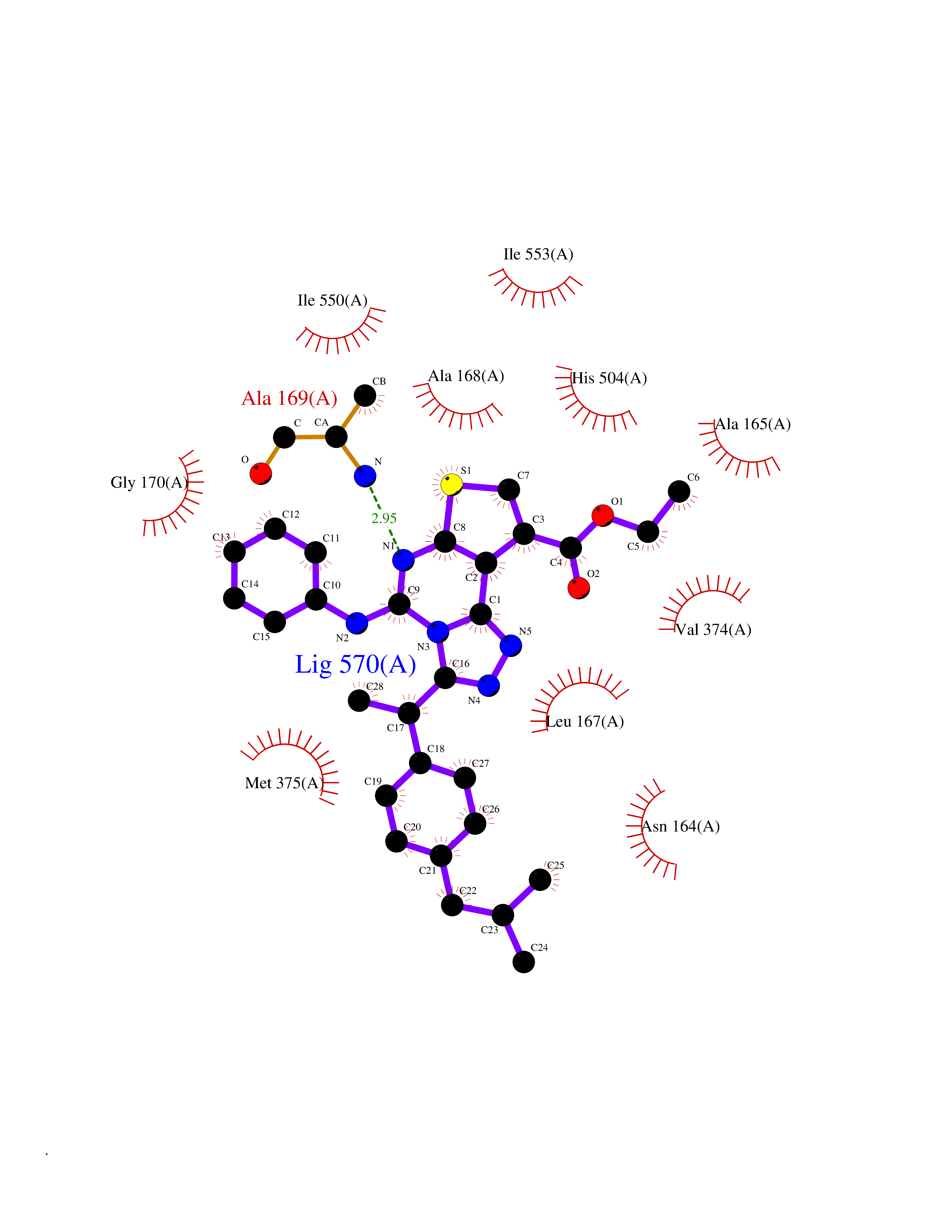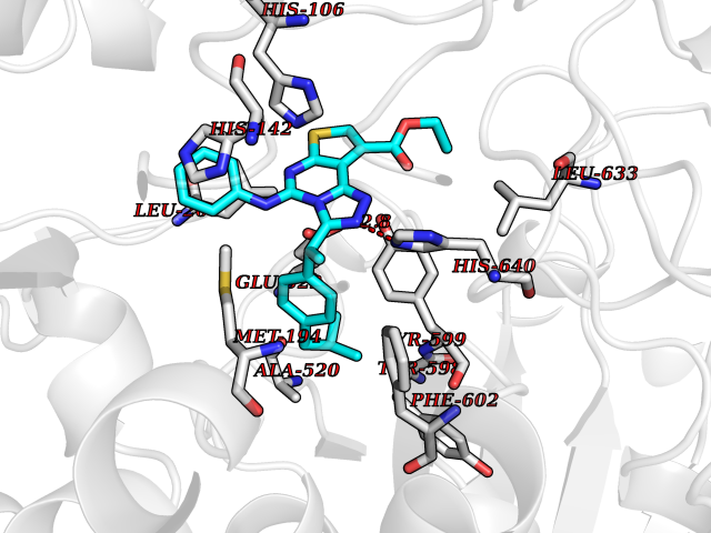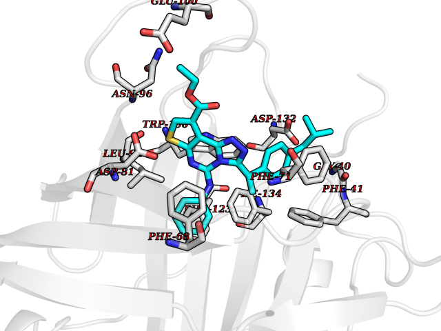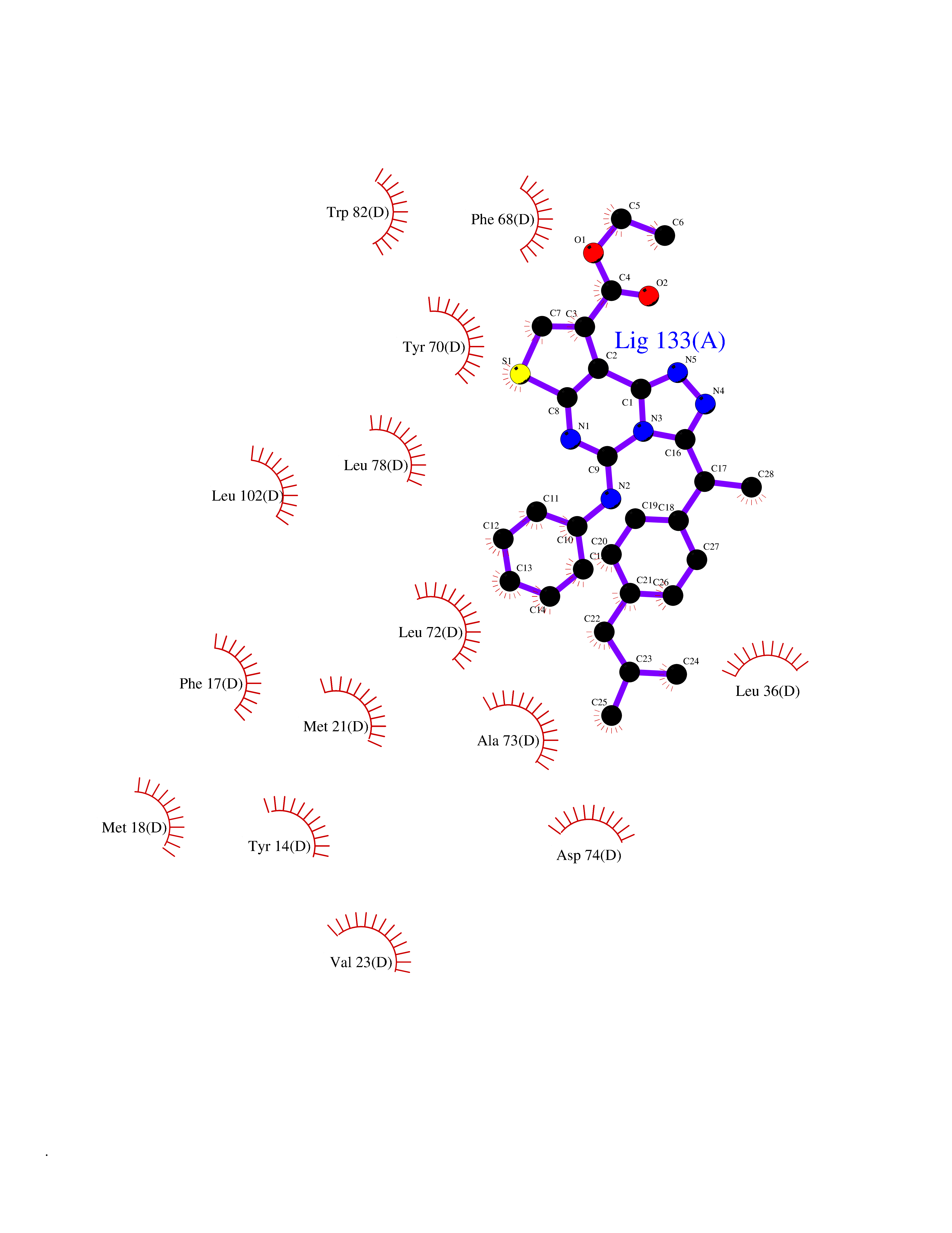 Target general information Gen name GUCY1B1 Organism Homo sapiens (Human) Uniprot ID TTD ID Synonyms Soluble guanylate cyclase small subunit; Guanylate cyclase soluble subunit beta-3; Guanylate cyclase soluble subunit beta-1; GUCY1B3; GUCSB3; GUC1B3; GCS-beta-3; GCS-beta-1 Protein family Adenylyl cyclase class-4/guanylyl cyclase family Biochemical class Phosphorus-oxygen lyase Function Mediates responses to nitric oxide (NO) by catalyzing the biosynthesis of the signaling molecule cGMP. Related diseases Neurodevelopmental disorder with seizures, hypotonia, and brain imaging abnormalities (NEDSHBA) [MIM:618922]: An autosomal recessive neurodevelopmental disorder characterized by global developmental delay, hypotonia, severe to profound intellectual disability, early-onset epilepsy, and microcephaly. Neuroimaging shows cerebral atrophy, thin corpus callosum and hypomyelination in a majority of cases. Death in childhood may occur. {ECO:0000269|PubMed:27435318, ECO:0000269|PubMed:28097321, ECO:0000269|PubMed:32286009, ECO:0000269|PubMed:33476302, ECO:0000269|PubMed:33500274}. The disease is caused by variants affecting the gene represented in this entry. Drugs (DrugBank ID) DB09401; DB15456 Interacts with Q02108; Q02108-1 EC number EC 4.6.1.2 Uniprot keywords 3D-structure; Alternative splicing; cGMP biosynthesis; Cytoplasm; Direct protein sequencing; GTP-binding; Heme; Iron; Lyase; Metal-binding; Nucleotide-binding; Proteomics identification; Reference proteome Protein physicochemical properties Chain ID A,B Molecular weight (Da) 121177 Length 1071 Aromaticity 0.09 Instability index 42.35 Isoelectric point 6.18 Charge (pH=7) -11.86 3D Binding mode Sequence SRVYLHTLAESICKLIFPEFERLNVALQRTLAKHKFEKTIAEQAVAAGVPVEVIKESLGEEVFKICYEEDENILGVVGGTLKDFLNSFSTLLKQASILCLLHVYYFTTSLILPGIIKAAAHVLYETEVEVSLYLLYSVHSLVIPTSLFCKTFPFHFMFDKDMTILQFGNGIRRLMNRRDKPNFEEYFEILTPKINQTFSGIMTMLNMQFVVRVRRVMDLKGQMIYIVESSAILFLGSPCVLYLSDIPIHNALRDVVLIGEQARAQDGLKKRLGKLKATLEQAHQALEEEKKKTVDLLCSIFPCEVAQQLWQGQVVQAKKFSNVTMLFSDIVGFTAICSQCSPLQVITMLNALYTRFDQQCGELDVYKVETIGDAYCVAGGLHKESDTHAVQIALMAVKMMELSDEVMSPHGEPIKMRIGLHSGSVFAGVVGVKMPRYCLFGNNVTLANKFESCSVPRKINVSPTTYRLLKDCPGFVFTPRSREELPPNFPSEIPGICHFLDAMYGFVNHALELLVIRNYGPEVWEDIKKEAQLDEEGQFLVRIIYDDSKTYDLVAAASKVLNLNAGEILQMFGKMFFVFCQESGYDTILRVLGSNVREFLQNLDALHDHLATIYPGMRAPSFRCTDAEKGKGLILHYYSEREGLQDIVIGIIKTVAQQIHGTEIDMKVIQQRNEECDHTQFLIEEKEESRISPYTFCKAFPFHIIFDRDLVVTQCGNAIYRVLPQLQPGNCSLLSVFSLVRPHIDISFHGILSHINTVFVLRSKEGLLDSCLRLKGQMIYLPEADSILFLCSPSVMNLDDLTRRGLYLSDIPLHDATRDLVLLGEQFREEYKLTQELEILTDRLQLTLRALEDEKKKTDTLLYSVLPPSVANELRHKRPVPAKRYDNVTILFSGIVGFNAFCSKHAGAMKIVNLLNDLYTRFDTLTDSRKNPFVYKVETVGDKYMTVSGLPEPCIHHARSICHLALDMMEIAGQVQVDGESVQITIGIHTGEVVTGVIGQRMPRYCLFGNTVNLTSRTETTGEKGKINVSEYTYRCLMSPENSDPQFHLEHRGPVSMKGKKEPMQVWFLSR Hydrogen bonds contact Hydrophobic contact | ||||