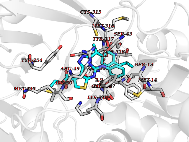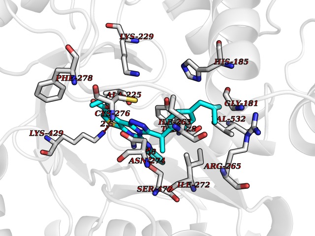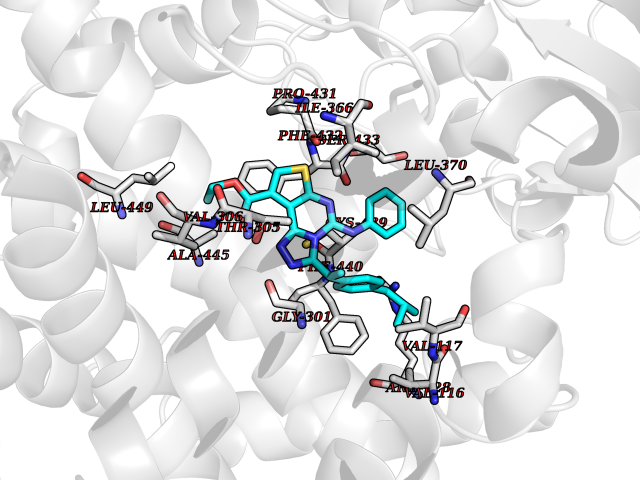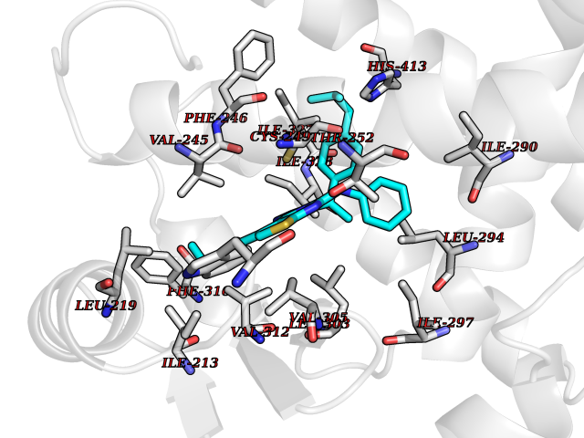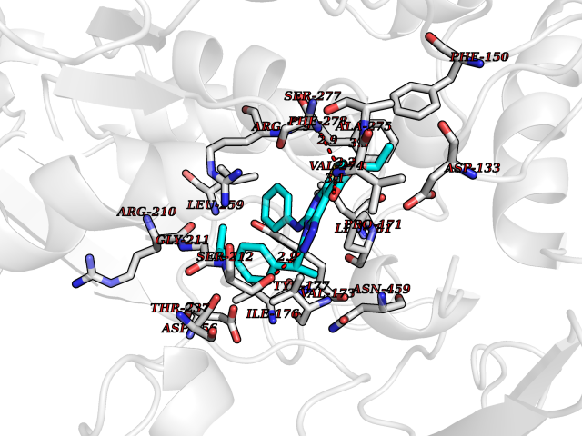 Target general information Gen name CYP21A2 Organism Homo sapiens (Human) Uniprot ID TTD ID NA Synonyms CYP21;CYP21B Protein family Cytochrome P450 family Biochemical class Oxidoreductase Function Heme binding.Iron ion binding.Steroid 21-monooxygenase activity.Steroid binding.Steroid hydroxylase activity. Related diseases Adrenal hyperplasia 3 (AH3) [MIM:201910]: A form of congenital adrenal hyperplasia, a common recessive disease due to defective synthesis of cortisol. Congenital adrenal hyperplasia is characterized by androgen excess leading to ambiguous genitalia in affected females, rapid somatic growth during childhood in both sexes with premature closure of the epiphyses and short adult stature. Four clinical types: 'salt wasting' (SW, the most severe type), 'simple virilizing' (SV, less severely affected patients), with normal aldosterone biosynthesis, 'non-classic form' or late-onset (NC or LOAH) and 'cryptic' (asymptomatic). {ECO:0000269|PubMed:10051010, ECO:0000269|PubMed:10094562, ECO:0000269|PubMed:10198222, ECO:0000269|PubMed:10364682, ECO:0000269|PubMed:10391209, ECO:0000269|PubMed:10408778, ECO:0000269|PubMed:10408786, ECO:0000269|PubMed:10443693, ECO:0000269|PubMed:10496074, ECO:0000269|PubMed:10720040, ECO:0000269|PubMed:11232002, ECO:0000269|PubMed:11598371, ECO:0000269|PubMed:11600539, ECO:0000269|PubMed:11746135, ECO:0000269|PubMed:12213891, ECO:0000269|PubMed:12222711, ECO:0000269|PubMed:12788866, ECO:0000269|PubMed:12887291, ECO:0000269|PubMed:12915679, ECO:0000269|PubMed:1406699, ECO:0000269|PubMed:1406709, ECO:0000269|PubMed:14676460, ECO:0000269|PubMed:14715874, ECO:0000269|PubMed:1496017, ECO:0000269|PubMed:15110320, ECO:0000269|PubMed:15126570, ECO:0000269|PubMed:16046588, ECO:0000269|PubMed:1644925, ECO:0000269|PubMed:16984992, ECO:0000269|PubMed:18319307, ECO:0000269|PubMed:18381579, ECO:0000269|PubMed:18445671, ECO:0000269|PubMed:1864962, ECO:0000269|PubMed:1937474, ECO:0000269|PubMed:20080860, ECO:0000269|PubMed:2072928, ECO:0000269|PubMed:21169732, ECO:0000269|PubMed:22014889, ECO:0000269|PubMed:2303461, ECO:0000269|PubMed:27721825, ECO:0000269|PubMed:29328376, ECO:0000269|PubMed:3038528, ECO:0000269|PubMed:3257825, ECO:0000269|PubMed:3260007, ECO:0000269|PubMed:3267225, ECO:0000269|PubMed:3497399, ECO:0000269|PubMed:3871526, ECO:0000269|PubMed:7749410, ECO:0000269|PubMed:8478006, ECO:0000269|PubMed:8485582, ECO:0000269|PubMed:8989258, ECO:0000269|PubMed:9067760, ECO:0000269|PubMed:9187661, ECO:0000269|PubMed:9497336}. The disease is caused by variants affecting the gene represented in this entry. Drugs (DrugBank ID) DB01026; DB05667 Interacts with NA EC number 1.14.14.16 Uniprot keywords 3D-structure; Alternative splicing; Congenital adrenal hyperplasia; Disease variant; Endoplasmic reticulum; Heme; Iron; Lipid metabolism; Lipid-binding; Membrane; Metal-binding; Microsome; Monooxygenase; Oxidoreductase; Proteomics identification; Reference proteome; Steroid-binding; Steroidogenesis Protein physicochemical properties Chain ID A,B,C Molecular weight (Da) 50326.2 Length 442 Aromaticity 0.08 Instability index 50.06 Isoelectric point 7.79 Charge (pH=7) 2.07 3D Binding mode Sequence KLPPLAPGFLHLLQPDLPIYLLGLTQKFGPIYRLHLGLQDVVVLNSKRTIEEAMVKKWADFAGRPEPLTYKLVSRNYPDLSLGDYSLLWKAHKKLTRSALLLGIRDSMEPVVEQLTQEFCERMRAQPGTPVAIEEEFSLLTCSIICYLTFGDKIKDDNLMPAYYKCIQEVLKTWSHWSIQIVDVIPFLRFFPNPGLRRLKQAIEKRDHIVEMQLRQHKESLVAGQWRDMMDYMLQGVAGQLLEGHVHMAAVDLLIGGTETTANTLSWAVVFLLHHPEIQQRLQEELDHESRVPYKDRARLPLLNATIAEVLRLRPVVPLALPHRTTRPSSISGYDIPEGTVIIPNLQGAHLDETVWERPHEFWPDRFLEPGKNSRALAFGCGARVCLGEPLARLELFVVLTRLLQAFTLLPSGDALPSLQPLPHCSVILKMQPFQVRLQPRG Hydrogen bonds contact Hydrophobic contact | ||||