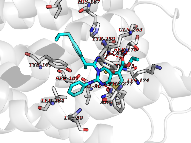 Target general information Gen name soxA Organism Bacillus sp. (strain B-0618) Uniprot ID TTD ID NA Synonyms sox Protein family MSOX/MTOX family, MSOX subfamily Biochemical class Oxidoreductase Function Sarcosine oxidase activity. Related diseases Defects in PPARG can lead to type 2 insulin-resistant diabetes and hyptertension. PPARG mutations may be associated with colon cancer. {ECO:0000269|PubMed:10394368}.; DISEASE: Obesity (OBESITY) [MIM:601665]: A condition characterized by an increase of body weight beyond the limitation of skeletal and physical requirements, as the result of excessive accumulation of body fat. {ECO:0000269|PubMed:9753710}. Disease susceptibility may be associated with variants affecting the gene represented in this entry.; DISEASE: Lipodystrophy, familial partial, 3 (FPLD3) [MIM:604367]: A form of lipodystrophy characterized by marked loss of subcutaneous fat from the extremities. Facial adipose tissue may be increased, decreased or normal. Affected individuals show an increased preponderance of insulin resistance, diabetes mellitus and dyslipidemia. {ECO:0000269|PubMed:11788685, ECO:0000269|PubMed:12453919}. The disease is caused by variants affecting the gene represented in this entry.; DISEASE: Glioma 1 (GLM1) [MIM:137800]: Gliomas are benign or malignant central nervous system neoplasms derived from glial cells. They comprise astrocytomas and glioblastoma multiforme that are derived from astrocytes, oligodendrogliomas derived from oligodendrocytes and ependymomas derived from ependymocytes. {ECO:0000269|PubMed:10851250}. Disease susceptibility may be associated with variants affecting the gene represented in this entry. Polymorphic PPARG alleles have been found to be significantly over-represented among a cohort of American patients with sporadic glioblastoma multiforme suggesting a possible contribution to disease susceptibility. Drugs (DrugBank ID) DB03098; DB01918; DB03517; DB03147; DB03366; DB02083; DB02543 Interacts with NA EC number 1.5.3.1 Uniprot keywords 3D-structure; Cytoplasm; Direct protein sequencing; FAD; Flavoprotein; Oxidoreductase Protein physicochemical properties Chain ID A,B Molecular weight (Da) 42606.4 Length 385 Aromaticity 0.1 Instability index 26.97 Isoelectric point 5.27 Charge (pH=7) -17.18 3D Binding mode Sequence STHFDVIVVGAGSMGMAAGYQLAKQGVKTLLVDAFDPPHTNGSHHGDTRIIRHAYGEGREYVPLALRSQELWYELEKETHHKIFTKTGVLVFGPKGESAFVAETMEAAKEHSLTVDLLEGDEINKRWPGITVPENYNAIFEPNSGVLFSENCIRAYRELAEARGAKVLTHTRVEDFDISPDSVKIETANGSYTADKLIVSMGAWNSKLLSKLNLDIPLQPYRQVVGFFESDESKYSNDIDFPGFMVEVPNGIYYGFPSFGGCGLKLGYHTFGQKIDPDTINREFGVYPEDESNLRAFLEEYMPGANGELKRGAVCMYTKTLDEHFIIDLHPEHSNVVIAAGFSGHGFKFSSGVGEVLSQLALTGKTEHDISIFSINRPALKESLQ Hydrogen bonds contact Hydrophobic contact | ||||