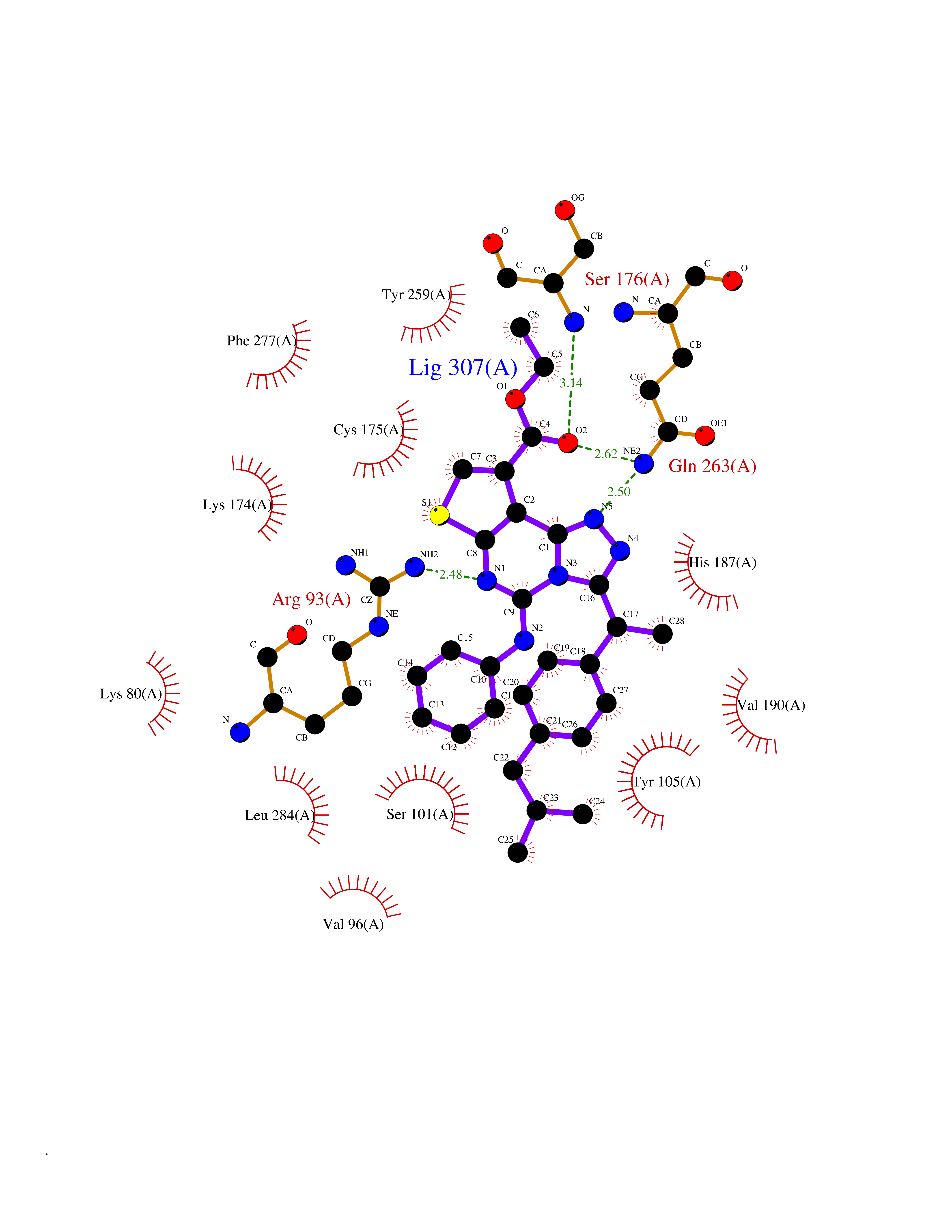 Target general information Gen name XDH Organism Homo sapiens (Human) Uniprot ID TTD ID Synonyms Xanthine oxidase; Xanthine dehydrogenase; XDHA Protein family Xanthine dehydrogenase family Biochemical class CH/CH(2) oxidoreductase Function Catalyzes the oxidation of hypoxanthine to xanthine. Catalyzes the oxidation of xanthine to uric acid. Contributes to the generation of reactive oxygen species. Has also low oxidase activity towards aldehydes (in vitro). Key enzyme in purine degradation. Related diseases Xanthinuria 1 (XAN1) [MIM:278300]: A disorder characterized by excretion of very large amounts of xanthine in the urine and a tendency to form xanthine stones. Uric acid is strikingly diminished in serum and urine. XAN1 is due to isolated xanthine dehydrogenase deficiency. Patients can metabolize allopurinol. {ECO:0000269|PubMed:10844591, ECO:0000269|PubMed:11379872, ECO:0000269|PubMed:14551354, ECO:0000269|PubMed:9153281}. The disease is caused by variants affecting the gene represented in this entry. Drugs (DrugBank ID) DB00640; DB00041; DB00437; DB00993; DB00958; DB01136; DB00856; DB00515; DB00746; DB03328; DB00997; DB03516; DB12466; DB04854; DB03147; DB04335; DB01020; DB00583; DB00170; DB01033; DB00157; DB03841; DB00336; DB01250; DB05262; DB06478; DB01168; DB00339; DB00127; DB01685; DB00831 Interacts with Q9Y3R0-3 EC number NA Uniprot keywords 2Fe-2S; 3D-structure; Cytoplasm; Disease variant; Disulfide bond; FAD; Flavoprotein; Iron; Iron-sulfur; Metal-binding; Molybdenum; NAD; Oxidoreductase; Peroxisome; Proteomics identification; Reference proteome; Secreted Protein physicochemical properties Chain ID A,B,C,D Molecular weight (Da) 143697 Length 1307 Aromaticity 0.08 Instability index 37.9 Isoelectric point 8.01 Charge (pH=7) 7.07 3D Binding mode Sequence ADKLVFFVNGRKVVEKNADPETTLLAYLRRKLGLSGTKLGCGEGGCGACTVMLSKYDRLQNKIVHFSANACLAPICSLHHVAVTTVEGIGSTKTRLHPVQERIAKSHGSQCGFCTPGIVMSMYTLLRNQPEPTMEEIENAFQGNLCRCTGYRPILQGFRTFARDGSPSLFKPEEFTPLDPTQEPIFPPELLRLKDTPRKQLRFEGERVTWIQASTLKELLDLKAQHPDAKLVVGNTEIGIEMKFKNMLFPMIVCPAWIPELNSVEHGPDGISFGAACPLSIVEKTLVDAVAKLPAQKTEVFRGVLEQLRWFAGKQVKSVASVGGNIITASPISDLNPVFMASGAKLTLVSRGTRRTVQMDHTFFPGYRKTLLSPEEILLSIEIPYSREGEYFSAFKQASRREDDIAKVTSGMRVLFKPGTTEVQELALCYGGMANRTISALKTTQRQLSKLWKEELLQDVCAGLAEELHLPPDAPGGMVDFRCTLTLSFFFKFYLTVLQKLGQENLEDKCGKLDPTFASATLLFQKDPPADVQLFQEVPKGQSEEDMVGRPLPHLAADMQASGEAVYCDDIPRYENELSLRLVTSTRAHAKIKSIDTSEAKKVPGFVCFISADDVPGSNITGICNDETVFAKDKVTCVGHIIGAVVADTPEHTQRAAQGVKITYEELPAIITIEDAIKNNSFYGPELKIEKGDLKKGFSEADNVVSGEIYIGGQEHFYLETHCTIAVPKGEAGEMELFVSTQNTMKTQSFVAKMLGVPANRIVVRVKRMGGGFGGKVTRSTVVSTAVALAAYKTGRPVRCMLDRDEDMLITGGRHPFLARYKVGFMKTGTVVALEVDHFSNVGNTQDLSQSIMERALFHMDNCYKIPNIRGTGRLCKTNLPSNTAFRGFGGPQGMLIAECWMSEVAVTCGMPAEEVRRKNLYKEGDLTHFNQKLEGFTLPRCWEECLASSQYHARKSEVDKFNKENCWKKRGLCIIPTKFGISFTVPFLNQAGALLHVYTDGSVLLTHGGTEMGQGLHTKMVQVASRALKIPTSKIYISETSTNTVPNTSPTAASVSADLNGQAVYAACQTILKRLEPYKKKNPSGSWEDWVTAAYMDTVSLSATGFYRTPNLGYSFETNSGNPFHYFSYGVACSEVEIDCLTGDHKNLRTDIVMDVGSSLNPAIDIGQVEGAFVQGLGLFTLEELHYSPEGSLHTRGPSTYKIPAFGSIPIEFRVSLLRDCPNKKAIYASKAVGEPPLFLAASIFFAIKDAIRAARAQHTGNNVKELFRLDSPATPEKIRNACVDKFTTLCVTGVPENCKPWSVRV Hydrogen bonds contact Hydrophobic contact | ||||