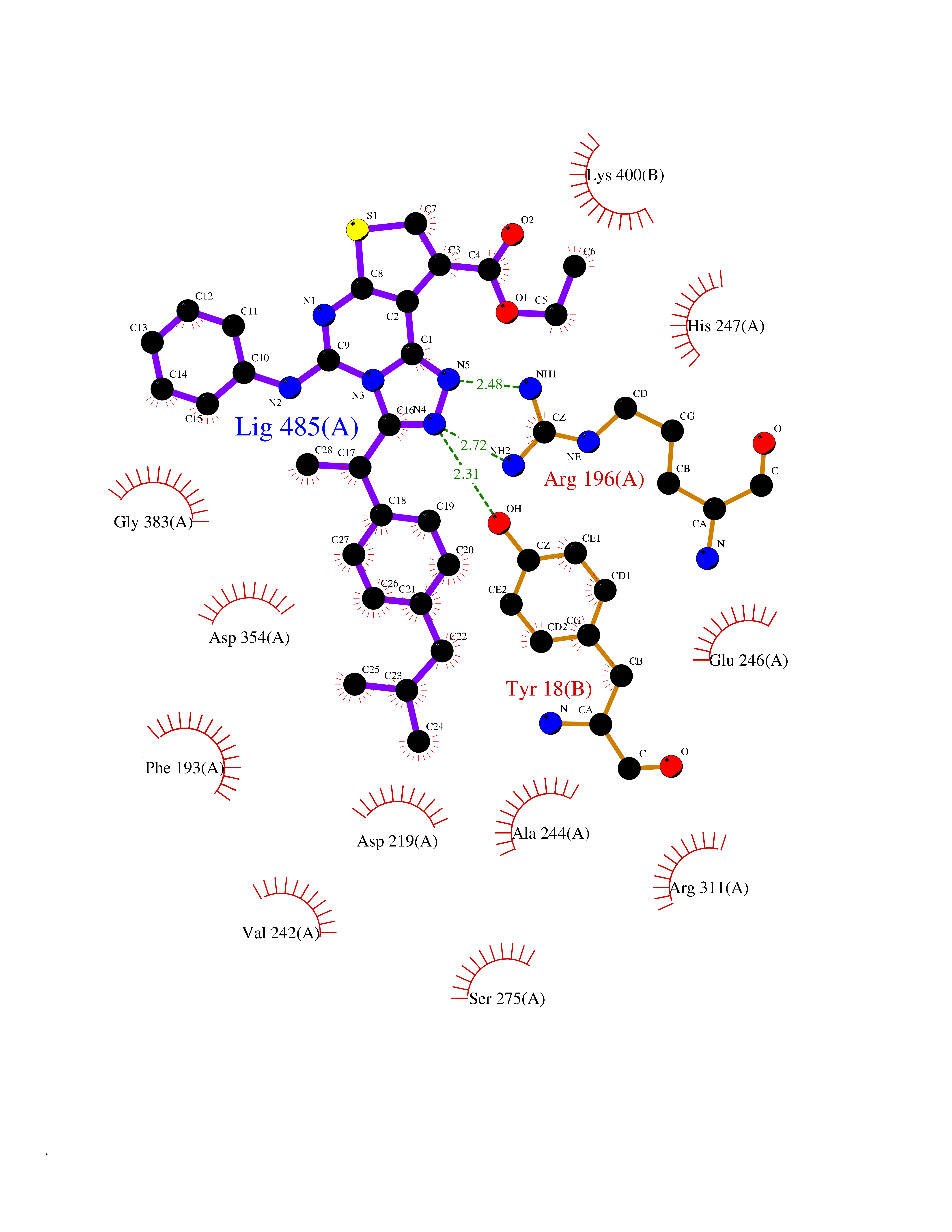 Target general information Gen name Bact aceE Organism Escherichia coli (strain K12) Uniprot ID TTD ID Synonyms aceE; Pyruvate decarboxylase E1 component Protein family NA Biochemical class Aldehyde/oxo donor oxidoreductase Function The pyruvate dehydrogenase complex catalyzes the overall conversion of pyruvate to acetyl-coa and co(2). It contains multiple copies of three enzymatic components: pyruvate dehydrogenase (e1), dihydrolipoamide acetyltransferase (e2) and lipoamide dehydrogenase. Related diseases Pseudovaginal perineoscrotal hypospadias (PPSH) [MIM:264600]: A form of male pseudohermaphroditism in which 46,XY males show ambiguous genitalia at birth, including perineal hypospadias and a blind perineal pouch, and develop masculinization at puberty. The name of the disorder stems from the finding of a blind-ending perineal opening resembling a vagina and a severely hypospadiac penis with the urethra opening onto the perineum. {ECO:0000269|PubMed:10718838, ECO:0000269|PubMed:10898110, ECO:0000269|PubMed:10999800, ECO:0000269|PubMed:12843198, ECO:0000269|PubMed:15064320, ECO:0000269|PubMed:1522235, ECO:0000269|PubMed:15528927, ECO:0000269|PubMed:15770495, ECO:0000269|PubMed:16098368, ECO:0000269|PubMed:16181229, ECO:0000269|PubMed:7554313, ECO:0000269|PubMed:8626825, ECO:0000269|PubMed:8768837, ECO:0000269|PubMed:9208814, ECO:0000269|PubMed:9745434, ECO:0000269|PubMed:9843052}. The disease is caused by variants affecting the gene represented in this entry. Drugs (DrugBank ID) DB01987 Interacts with P0AFG8; P0A8N7; P77439; P46889; P0A6F5; P0AEV9; P0AB83; P0AB89; P0AG40; P05100; P26602; P0A9U1; P0A8L7; P76049; P76170 EC number NA Uniprot keywords 3D-structure; Acetylation; Direct protein sequencing; Magnesium; Metal-binding; Oxidoreductase; Pyruvate; Reference proteome; Thiamine pyrophosphate Protein physicochemical properties Chain ID A,B Molecular weight (Da) 179825 Length 1602 Aromaticity 0.1 Instability index 37.46 Isoelectric point 5.51 Charge (pH=7) -42.23 3D Binding mode Sequence ISNYINTIPVEEQPEYPGNLELERRIRSAIRWNAIMTVLRASKKDLELGGHMASFQSSATIYDVCFNHFFRARNEQDGGDLVYFQGHISPGVYARAFLEGRLTQEQLDNFRQEVHGNGLSSYPHPKLMPEFWQFPTVSMGLGPIGAIYQAKFLKYLEHRGLKDTSKQTVYAFLGDGEMDEPESKGAITIATREKLDNLVFVINCNLQRLDGPVTGNGKIINELEGIFEGAGWNVIKVMWGSRWDELLRKDTSGKLIQLMNETVDGDYQTFKSKDGAYVREHFFGKYPETAALVADWTDEQIWALNRGGHDPKKIYAAFKKAQETKGKATVILAHTIKGYGMGDAAMDGVRHIRDRFNVPVSDADIEKLPYITFPEGSEEHTYLHAQRQKLHGYLPSRQPNFTEKLELPSLQDFGALLEEQSKEISTTIAFVRALNVMLKNKSIKDRLVPIIADEARTFGMEGLFRQIGIYSPEDEKGQILQEGINELGAGCSWLAAATSYSTNNLPMIPFYIYYSMFGFQRIGDLCWAAGDQQARGFLIGGTSGRTTLNGEGLQHEDGHSHIQSLTIPNCISYDPAYAYEVAVIMHDGLERMYGEKQENVYYYITTLNENYHMPAMPEGAEEGIRKGIYKLETIEGSKGKVQLLGSGSILRHVREAAEILAKDYGVGSDVYSVTSFTELARDGQDCERWNMLHPLETPRVPYIAQVMNDAPAVASTDYMKLFAEQVRTYVPADDYRVLGTDGFGRSDSRENLRHHFEVDASYVVVAALGELAKRGEIDKKVVADAIAKFNIDADKVNPRLAISNYINTIPVEEQPEYPGNLELERRIRSAIRWNAIMTVLRASKKDLELGGHMASFQSSATIYDVCFNHFFRARNEQDGGDLVYFQGHISPGVYARAFLEGRLTQEQLDNFRQEVHGNGLSSYPHPKLMPEFWQFPTVSMGLGPIGAIYQAKFLKYLEHRGLKDTSKQTVYAFLGDGEMDEPESKGAITIATREKLDNLVFVINCNLQRLDGPVTGNGKIINELEGIFEGAGWNVIKVMWGSRWDELLRKDTSGKLIQLMNETVDGDYQTFKSKDGAYVREHFFGKYPETAALVADWTDEQIWALNRGGHDPKKIYAAFKKAQETKGKATVILAHTIKGYGMGDAAMDGVRHIRDRFNVPVSDADIEKLPYITFPEGSEEHTYLHAQRQKLHGYLPSRQPNFTEKLELPSLQDFGALLEEQSKEISTTIAFVRALNVMLKNKSIKDRLVPIIADEARTFGMEGLFRQIGIYSPEDEKGQILQEGINELGAGCSWLAAATSYSTNNLPMIPFYIYYSMFGFQRIGDLCWAAGDQQARGFLIGGTSGRTTLNGEGLQHEDGHSHIQSLTIPNCISYDPAYAYEVAVIMHDGLERMYGEKQENVYYYITTLNENYHMPAMPEGAEEGIRKGIYKLETIEGSKGKVQLLGSGSILRHVREAAEILAKDYGVGSDVYSVTSFTELARDGQDCERWNMLHPLETPRVPYIAQVMNDAPAVASTDYMKLFAEQVRTYVPADDYRVLGTDGFGRSDSRENLRHHFEVDASYVVVAALGELAKRGEIDKKVVADAIAKFNIDADKVNPRLA Hydrogen bonds contact Hydrophobic contact | ||||