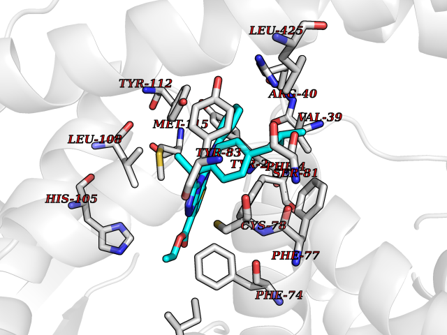 Target general information Gen name CYP2A6 Organism Homo sapiens (Human) Uniprot ID TTD ID Synonyms Cytochrome P450(I); Cytochrome P450 IIA3; Coumarin 7-hydroxylase; CYPIIA6; CYP2A6; CYP2A3 Protein family Cytochrome P450 family Biochemical class Paired donor oxygen oxidoreductase Function Exhibits a high coumarin 7-hydroxylase activity. Can act in the hydroxylation of the anti-cancer drugs cyclophosphamide and ifosphamide. Competent in the metabolic activation of aflatoxin B1. Constitutes the major nicotine C-oxidase. Possesses low phenacetin O-deethylation activity. Related diseases Lecithin-cholesterol acyltransferase deficiency (LCATD) [MIM:245900]: A disorder of lipoprotein metabolism characterized by inadequate esterification of plasmatic cholesterol. Two clinical forms are recognized: complete LCAT deficiency and fish-eye disease. LCATD is generally referred to the complete form which is associated with absence of both alpha and beta LCAT activities resulting in esterification anomalies involving both HDL (alpha-LCAT activity) and LDL (beta-LCAT activity). It causes a typical triad of diffuse corneal opacities, target cell hemolytic anemia, and proteinuria with renal failure. {ECO:0000269|PubMed:11423760, ECO:0000269|PubMed:12957688, ECO:0000269|PubMed:15994445, ECO:0000269|PubMed:16051254, ECO:0000269|PubMed:16216249, ECO:0000269|PubMed:1681161, ECO:0000269|PubMed:1859405, ECO:0000269|PubMed:2370048, ECO:0000269|PubMed:7607641, ECO:0000269|PubMed:7711728, ECO:0000269|PubMed:8318557, ECO:0000269|PubMed:8432868, ECO:0000269|PubMed:8807342, ECO:0000269|PubMed:9007616, ECO:0000269|PubMed:9741700}. The disease is caused by variants affecting the gene represented in this entry.; DISEASE: Fish-eye disease (FED) [MIM:136120]: A disorder of lipoprotein metabolism due to partial lecithin-cholesterol acyltransferase deficiency that affects only alpha-LCAT activity. FED is characterized by low plasma HDL and corneal opacities due to accumulation of cholesterol deposits in the cornea ('fish-eye'). {ECO:0000269|PubMed:1516702, ECO:0000269|PubMed:1571050, ECO:0000269|PubMed:15994445, ECO:0000269|PubMed:1737840, ECO:0000269|PubMed:21901787, ECO:0000269|PubMed:8620346, ECO:0000269|PubMed:9261271}. The disease is caused by variants affecting the gene represented in this entry. Drugs (DrugBank ID) DB07621; DB07623; DB00316; DB01118; DB00182; DB01435; DB05676; DB01274; DB09274; DB11586; DB00972; DB00443; DB01194; DB01222; DB09061; DB14737; DB06119; DB00356; DB00568; DB00604; DB06470; DB00257; DB00363; DB04665; DB00531; DB06292; DB01234; DB14649; DB00470; DB06374; DB00216; DB00330; DB01039; DB04841; DB01544; DB00544; DB00690; DB01213; DB00983; DB01159; DB00741; DB01181; DB00951; DB01026; DB01006; DB00281; DB06448; DB04871; DB14009; DB01043; DB00170; DB00763; DB00553; DB01028; DB00959; DB00916; DB01011; DB01110; DB00471; DB07609; DB07617; DB00238; DB00184; DB01115; DB06712; DB00717; DB00312; DB03783; DB01174; DB00252; DB01085; DB04977; DB14631; DB00635; DB00396; DB01045; DB15119; DB01037; DB06739; DB01236; DB00675; DB09256; DB09327; DB12816; DB00752; DB00755; DB12245; DB00313; DB09068; DB00495 Interacts with Q9UI14 EC number EC 1.14.13.- Uniprot keywords 3D-structure; Direct protein sequencing; Endoplasmic reticulum; Heme; Iron; Lipid metabolism; Membrane; Metal-binding; Microsome; Monooxygenase; NADP; Oxidoreductase; Proteomics identification; Reference proteome Protein physicochemical properties Chain ID A Molecular weight (Da) 53586.9 Length 467 Aromaticity 0.12 Instability index 40.76 Isoelectric point 9.14 Charge (pH=7) 7.77 3D Binding mode Sequence KGKLPPGPTPLPFIGNYLQLNTEQMYNSLMKISERYGPVFTIHLGPRRVVVLCGHDAVREALVDQAEEFSGRGEQATFDWVFKGYGVVFSNGERAKQLRRFSIATLRDFGVGKRGIEERIQEEAGFLIDALRGTGGANIDPTFFLSRTVSNVISSIVFGDRFDYKDKEFLSLLRMMLGIFQFTSTSTGQLYEMFSSVMKHLPGPQQQAFQLLQGLEDFIAKKVEHNQRTLDPNSPRDFIDSFLIRMQEEEKNPNTEFYLKNLVMTTLNLFIGGTETVSTTLRYGFLLLMKHPEVEAKVHEEIDRVIGKNRQPKFEDRAKMPYMEAVIHEIQRFGDVIPMSLARRVKKDTKFRDFFLPKGTEVYPMLGSVLRDPSFFSNPQDFNPQHFLNEKGQFKKSDAFVPFSIGKRNCFGEGLARMELFLFFTTVMQNFRLKSSQSPKDIDVSPKHVGFATIPRNYTMSFLPRHH Hydrogen bonds contact Hydrophobic contact | ||||