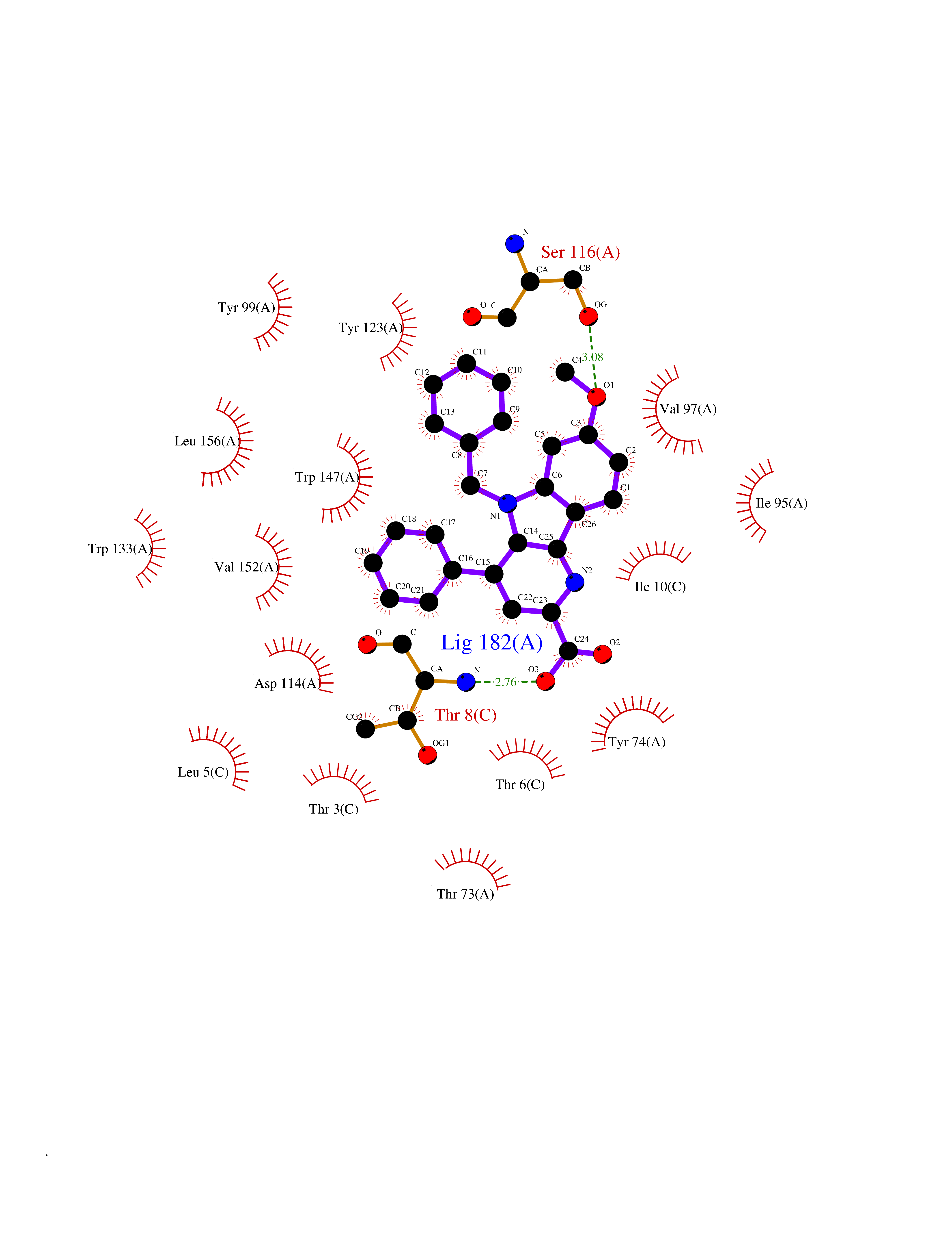 | Target general information Gen name TRBC1 Organism Homo sapiens (Human) Uniprot ID TTD ID Synonyms TCRBC1; BV05S1J2.2 Protein family NA Biochemical class NA Function Alpha-beta T cell receptors are antigen specific receptors which are essential to the immune response and are present on the cell surface of T lymphocytes. Recognize peptide-major histocompatibility (MH) (pMH) complexes that are displayed by antigen presenting cells (APC), a prerequisite for efficient T cell adaptive immunity against pathogens. Binding of alpha-beta TR to pMH complex initiates TR-CD3 clustering on the cell surface and intracellular activation of LCK that phosphorylates the ITAM motifs of CD3G, CD3D, CD3E and CD247 enabling the recruitment of ZAP70. In turn, ZAP70 phosphorylates LAT, which recruits numerous signaling molecules to form the LAT signalosome. The LAT signalosome propagates signal branching to three major signaling pathways, the calcium, the mitogen-activated protein kinase (MAPK) kinase and the nuclear factor NF-kappa-B (NF-kB) pathways, leading to the mobilization of transcription factors that are critical for gene expression and essential for T cell growth and differentiation. The T cell repertoire is generated in the thymus, by V-(D)-J rearrangement. This repertoire is then shaped by intrathymic selection events to generate a peripheral T cell pool of self-MH restricted, non-autoaggressive T cells. Post-thymic interaction of alpha-beta TR with the pMH complexes shapes TR structural and functional avidity. Constant region of T cell receptor (TR) alpha chain. Related diseases Immunodeficiency 57 with autoinflammation (IMD57) [MIM:618108]: An autosomal recessive primary immunodeficiency characterized by lymphopenia and recurrent viral, bacterial, and fungal infections. Patients exhibit early-onset inflammatory bowel disease involving the upper and lower gastrointestinal tract, and develop progressive polyarthritis. {ECO:0000269|PubMed:30026316}. The disease is caused by variants affecting the gene represented in this entry. RIPK1-deficient immune cells from IMD57 patients have impaired proinflammatory signaling leading to dysregulated cytokine secretion and are prone to necroptosis. {ECO:0000269|PubMed:30026316}.; DISEASE: Autoinflammation with episodic fever and lymphadenopathy (AIEFL) [MIM:618852]: An autosomal dominant immunologic disorder characterized by early onset of recurrent episodes of unexplained fever, lymphadenopathy, hepatosplenomegaly, and increased levels of inflammatory cytokines and chemokines in patient serum. {ECO:0000269|PubMed:31827280, ECO:0000269|PubMed:31827281}. The disease is caused by variants affecting the gene represented in this entry. Drugs (DrugBank ID) DB02740 Interacts with NA EC number NA Uniprot keywords 3D-structure; Adaptive immunity; Cell membrane; Disulfide bond; Glycoprotein; Immunity; Immunoglobulin domain; Membrane; Proteomics identification; Receptor; Reference proteome; T cell receptor; Transmembrane; Transmembrane helix Protein physicochemical properties Chain ID C,B,A Molecular weight (Da) 84668.2 Length 736 Aromaticity 0.13 Instability index 39.96 Isoelectric point 5.8 Charge (pH=7) -14.36 3D Binding mode Sequence IQRPPKIQVYSRHPPNYLNCYVYGFHPPQIEIDLLKIKSEQSDLSFSKDWSFYLLSHATPNSKDQYSCRVKHVTLEQPRIVKWDRTHSLRYFRLGISEIPEFISAGYVDSHPITMYNSVSQLKEPRALWMEENLAPDHWERYTQLLRGWQQMFKVELKQLQHHYNHSGFHTYQRMIGCELLEDGSITGFLQYAYDGQDFLIFNKDTLSWMAMDNVADIIRRVWEANQHELLYQKNWLEEECIAWLKRFLEYGKDALQRTEPPKVRVNHKTTLYCRAYGFYPPEISINWMKNGEEIFQDTDYGGILPSGDGTYQTWVSVELGDIYSCHVEHGGVHMVLQGFQQNIDQPTEMTATEGAIVQINCTYQTSGFNGLFWYQQHAGEAPTFLSYNVLDGLEEKGRFSSFLSRSKGYSYLLLKELQMKDSASYLCAVKDSNYQLIWGAGTKLIIKPNIQNPDPAVYQLRDSKSSDKSVCLFTDFDKDSDVYITDKKSNSAVAWSNAGVTQTPKFQVLKTGQSMTLQCAQDMNHNSMYWYRQDPGMGLRLIYYSASEGTTDKGEVPNGYNVSRLNKREFSLRLESAAPSQTSVYFCASSVWTGEGSGELFFGEGSRLTVLEDLKNVFPPEVAVFEPSEAEISHTQKATLVCLATGFYPDHVELSWWVNGKEVHSGVCTDPQPLKEQPALNDSRYALSSRLRVSATFWQNPRNHFRCQVQFYGLSENDEWKPVTQIVSAEAWGRA Hydrogen bonds contact Hydrophobic contact | ||||