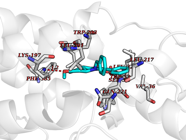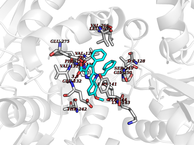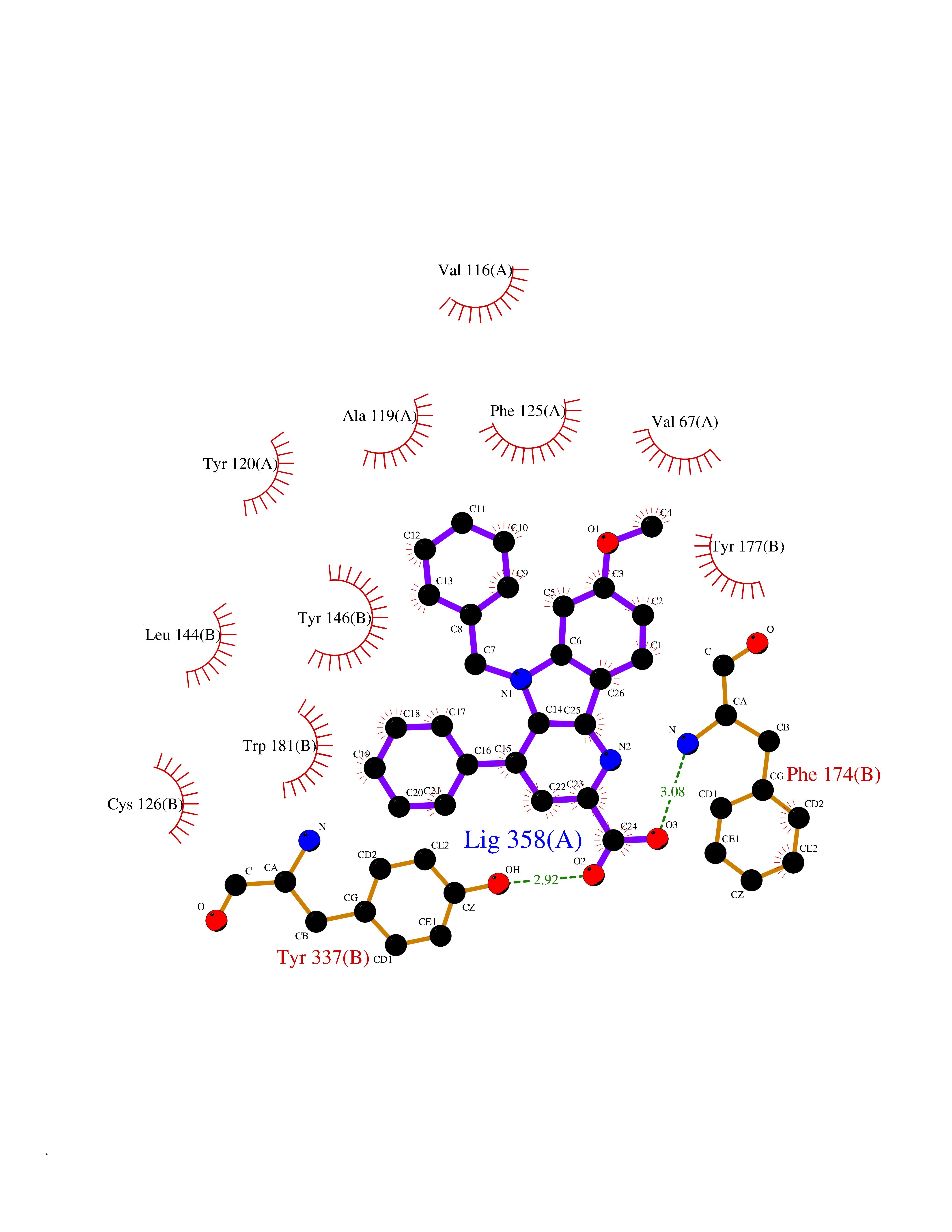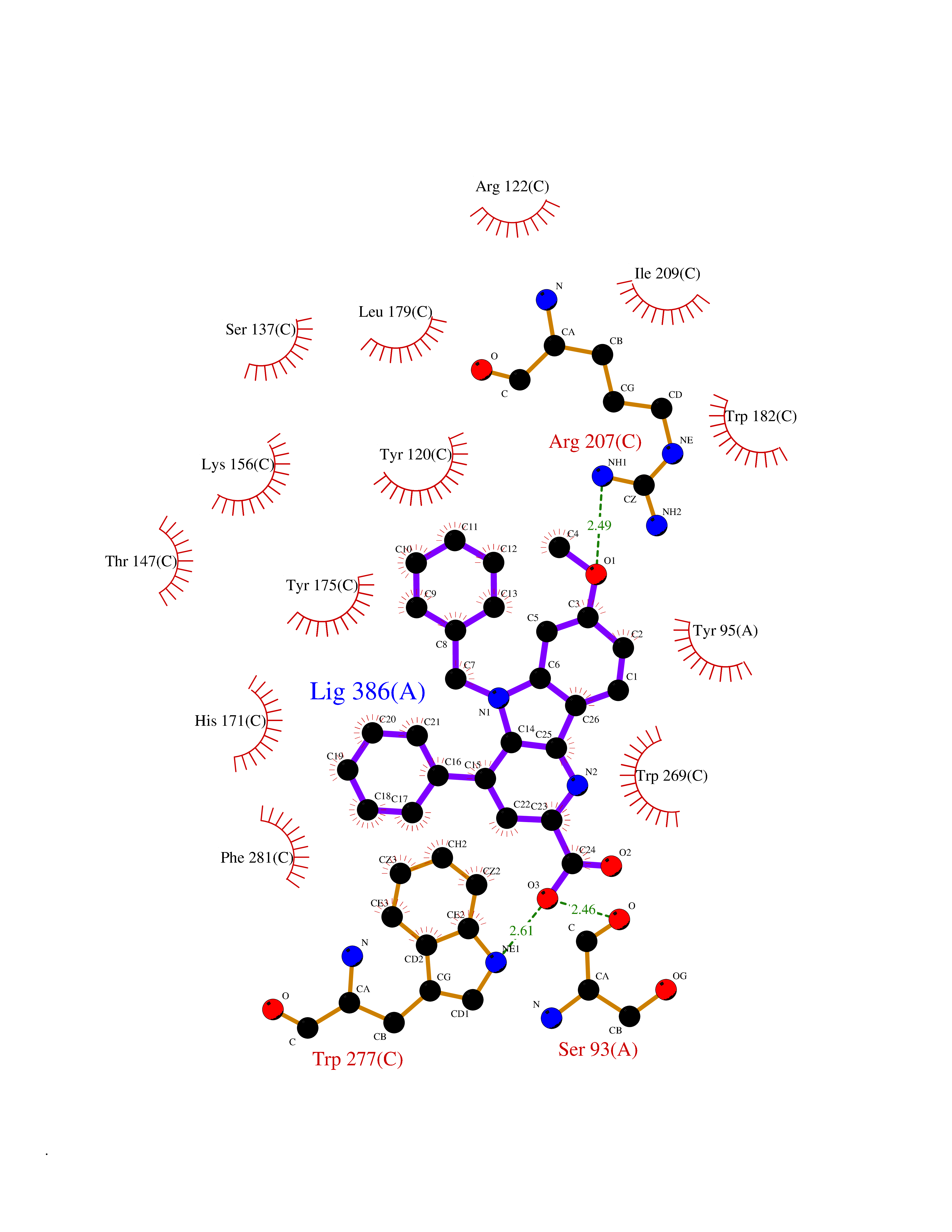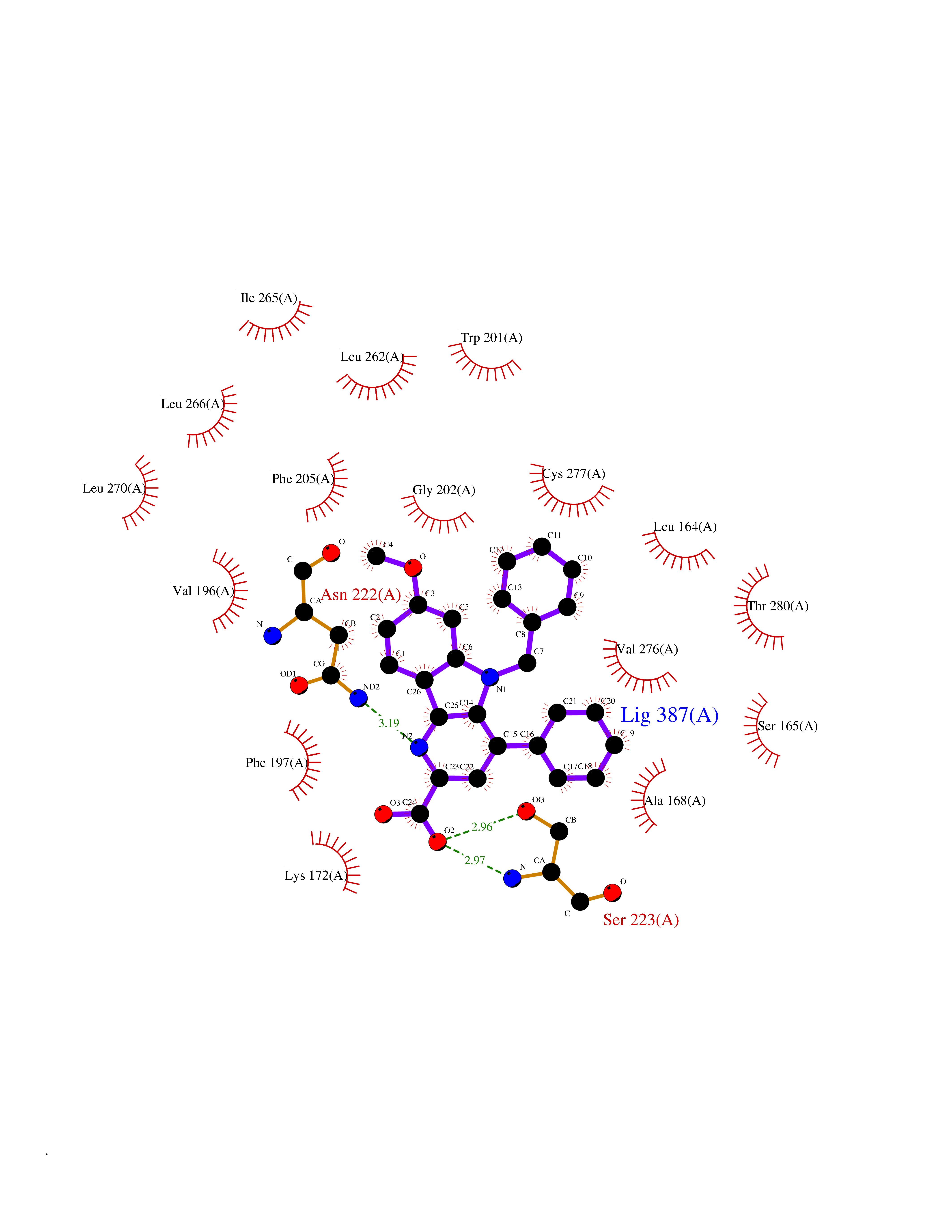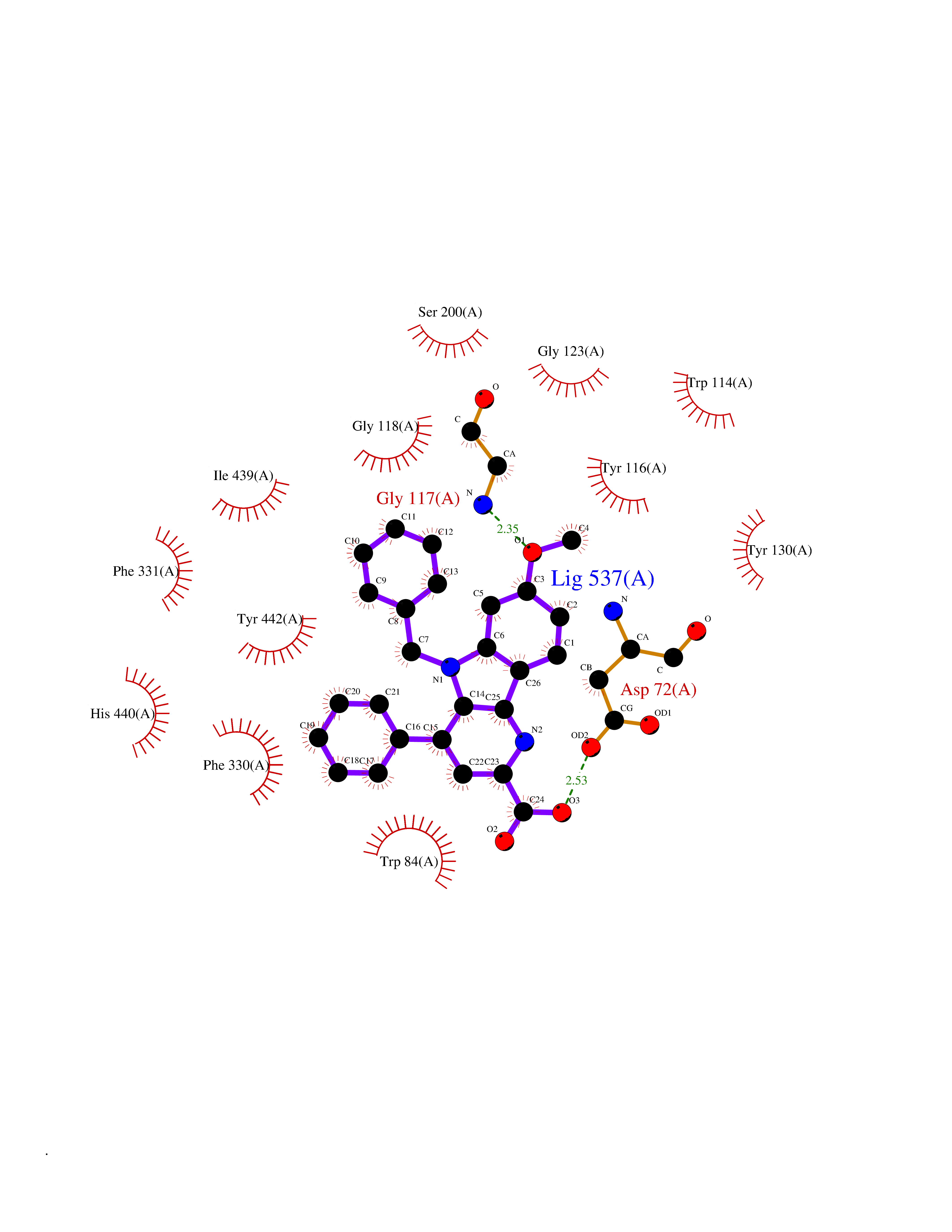 | Target general information Gen name MAOA Organism Homo sapiens (Human) Uniprot ID TTD ID Synonyms Monoamine oxidase A; Amine oxidase [flavin-containing] A Protein family Flavin monoamine oxidase family Biochemical class CH-NH(2) donor oxidoreductase Function MAOA preferentially oxidizes biogenic amines such as 5-hydroxytryptamine (5-HT), norepinephrine and epinephrine. Catalyzes the oxidative deamination of biogenic and xenobiotic amines and has important functions in the metabolism of neuroactive and vasoactive amines in the central nervous system and peripheral tissues. Related diseases Brunner syndrome (BRNRS) [MIM:300615]: A form of X-linked non-dysmorphic mild intellectual disability. Male patients are affected by borderline intellectual deficit and exhibit abnormal behavior, including disturbed regulation of impulsive aggression. Obligate female carriers have normal intelligence and behavior. {ECO:0000269|PubMed:8211186}. The disease is caused by variants affecting the gene represented in this entry. Drugs (DrugBank ID) DB01472; DB00918; DB00182; DB06698; DB04889; DB13876; DB01445; DB06774; DB00215; DB04017; DB09130; DB05205; DB07641; DB00988; DB01363; DB00668; DB12329; DB01175; DB03147; DB14914; DB00614; DB01381; DB07919; DB04818; DB01247; DB00601; DB01577; DB00805; DB01442; DB01171; DB08804; DB00952; DB04820; DB00184; DB04821; DB06412; DB01626; DB00780; DB00191; DB00388; DB00397; DB09244; DB04850; DB00721; DB01168; DB00571; DB00852; DB09363; DB00140; DB00953; DB06654; DB01037; DB01104; DB00669; DB14569; DB09042; DB00624; DB13943; DB13944; DB13946; DB09245; DB00752; DB15328; DB09185; DB04832; DB00315; DB00909 Interacts with P27338 EC number EC 1.4.3.4 Uniprot keywords 3D-structure; Acetylation; Alternative splicing; Catecholamine metabolism; Direct protein sequencing; Disease variant; FAD; Flavoprotein; Intellectual disability; Membrane; Mitochondrion; Mitochondrion outer membrane; Neurotransmitter degradation; Oxidoreductase; Phosphoprotein; Proteomics identification; Reference proteome; Transmembrane; Transmembrane helix Protein physicochemical properties Chain ID A Molecular weight (Da) 58195.3 Length 513 Aromaticity 0.11 Instability index 34.97 Isoelectric point 7.98 Charge (pH=7) 2.87 3D Binding mode Sequence HMFDVVVIGGGISGLSAAKLLTEYGVSVLVLEARDRVGGRTYTIRNEHVDYVDVGGAYVGPTQNRILRLSKELGIETYKVNVSERLVQYVKGKTYPFRAAFPPVWNPIAYLDYNNLWRTIDNMGKEIPTDAPWEAQHADKWDKMTMKELIDKICWTKTARRFAYLFVNINVTSEPHEVSALWFLWYVKQCGGTTRIFSVTNGGQERKFVGGSGQVSERIMDLLGDQVKLNHPVTHVDQSSDNIIIETLNHEHYECKYVINAIPPTLTAKIHFRPELPAERNQLIQRLPMGAVIKCMMYYKEAFWKKKDYCGCMIIEDEDAPISITLDDTKPDGSLPAIMGFILARKADRLAKLHKEIRKKKICELYAKVLGSQEALHPVHYEEKNWCEEQYSGGCYTAYFPPGIMTQYGRVIRQPVGRIFFAGTETATKWSGYMEGAVEAGERAAREVLNGLGKVTEKDIWVQEPESKDVPAVEITHTFWERNLPSVSGLLKIIGFSTSVTALGFVLYKYKLL Hydrogen bonds contact Hydrophobic contact | ||||