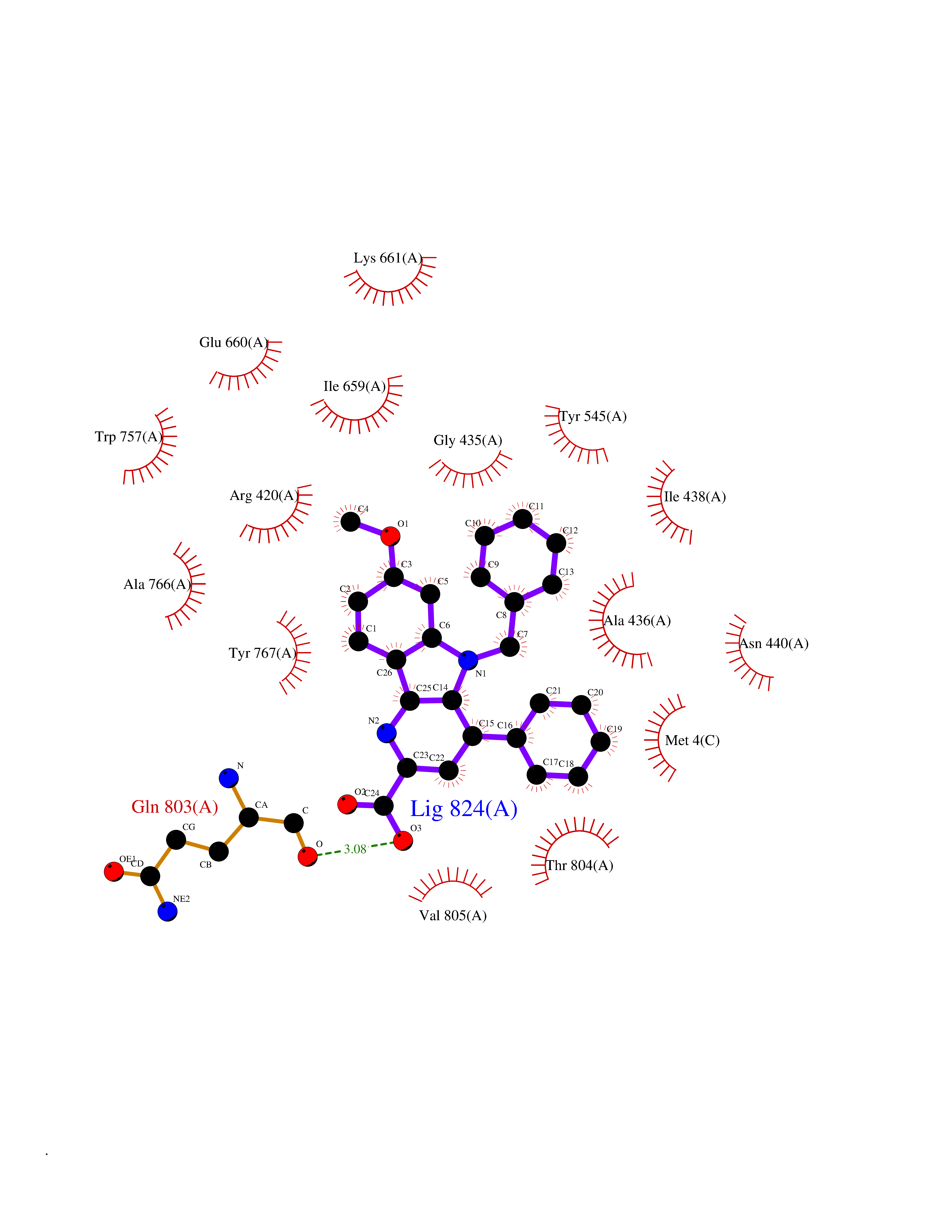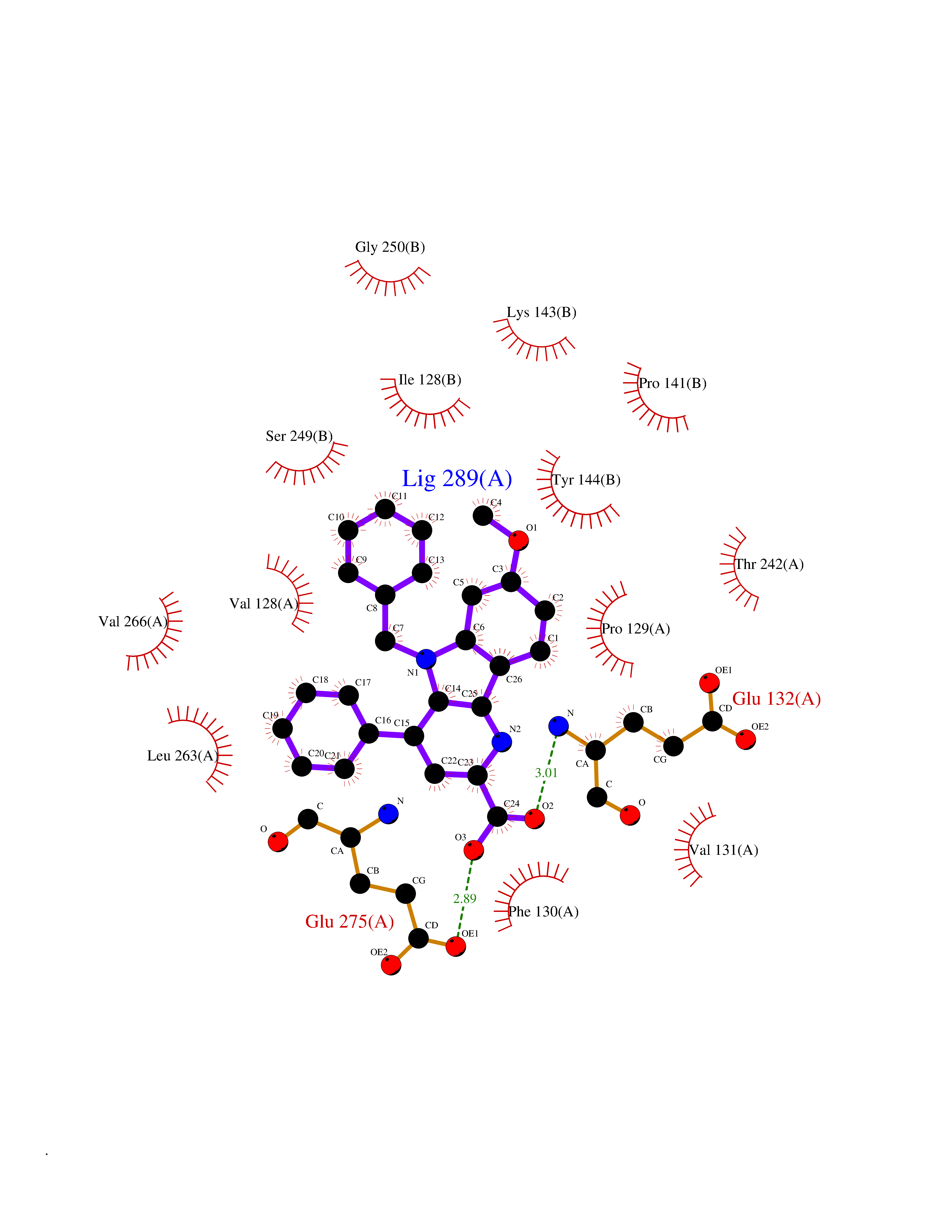 | Target general information Gen name PTGDR2 Organism Homo sapiens (Human) Uniprot ID TTD ID Synonyms PTGDR2; Chemoattractant receptor-homologous molecule expressed on Th2 cells; CD294 Protein family G-protein coupled receptor 1 family Biochemical class GPCR rhodopsin Function Receptor for prostaglandin D2 (PGD2). Coupled to the G(i)-protein. Receptor activation may result in pertussis toxin- sensitive decreases in cAMP levels and Ca(2+) mobilization. PI3K signaling is also implicated in mediating PTGDR2 effects. PGD2 induced receptor internalization. CRTH2 internalization can be regulated by diverse kinases such as, PKC, PKA, ADRBK1/GRK2, GPRK5/GRK5 and GRK6. Receptoractivation is responsible, at least in part, in immune regulation and allergic/inflammation responses. Related diseases Neurodevelopmental disorder with seizures, hypotonia, and brain imaging abnormalities (NEDSHBA) [MIM:618922]: An autosomal recessive neurodevelopmental disorder characterized by global developmental delay, hypotonia, severe to profound intellectual disability, early-onset epilepsy, and microcephaly. Neuroimaging shows cerebral atrophy, thin corpus callosum and hypomyelination in a majority of cases. Death in childhood may occur. {ECO:0000269|PubMed:27435318, ECO:0000269|PubMed:28097321, ECO:0000269|PubMed:32286009, ECO:0000269|PubMed:33476302, ECO:0000269|PubMed:33500274}. The disease is caused by variants affecting the gene represented in this entry. Drugs (DrugBank ID) DB00770; DB12789; DB00917; DB01088; DB00328; DB02056; DB13036; DB00605; DB04828 Interacts with NA EC number NA Uniprot keywords 3D-structure; Cell membrane; Disulfide bond; G-protein coupled receptor; Glycoprotein; Membrane; Phosphoprotein; Proteomics identification; Receptor; Reference proteome; Transducer; Transmembrane; Transmembrane helix Protein physicochemical properties Chain ID A Molecular weight (Da) 49740.6 Length 447 Aromaticity 0.1 Instability index 37.89 Isoelectric point 10.13 Charge (pH=7) 21.88 3D Binding mode Sequence ATLKPLCPILEQMSRLQSHSATSIRYIDHAAVLLHGLASLLGLVENGVILFVVGCRMRQTVVTTWVLHLALSDLLASASLPFFTYFLAVGHSWELGTTFCKLHSSIFFLNMFASGFLLSAISLDRCLQVVRPVWAQNHRTVAAAHKVCLVLWALAVLNTVPYFVFRDTISRLDGRIMCYYNVLLLNPGPDRDATCNSRQAALAVSKFLLAFLVPLAIIASSHAAVSLRLQHRADLGLQHRNIFEMLRIDEGGGSGGDEAEKLFNQDVDAAVRGILRNAKLKPVYDSLDAVRRAALINMVFQMGETGVAGFTNSLRMLQQKRWDEAAVNLAKSRWYNQTPNRAKRVITTFRTGTWDAYRRRPGRFVRLVAAVVAAFALCWGPYHVFSLLEARAHANPGLRPLVWRGLPFVTSLAFFNSVANPVLYVLTXPDMLRKLRRSLRTVLESVL Hydrogen bonds contact Hydrophobic contact | ||||