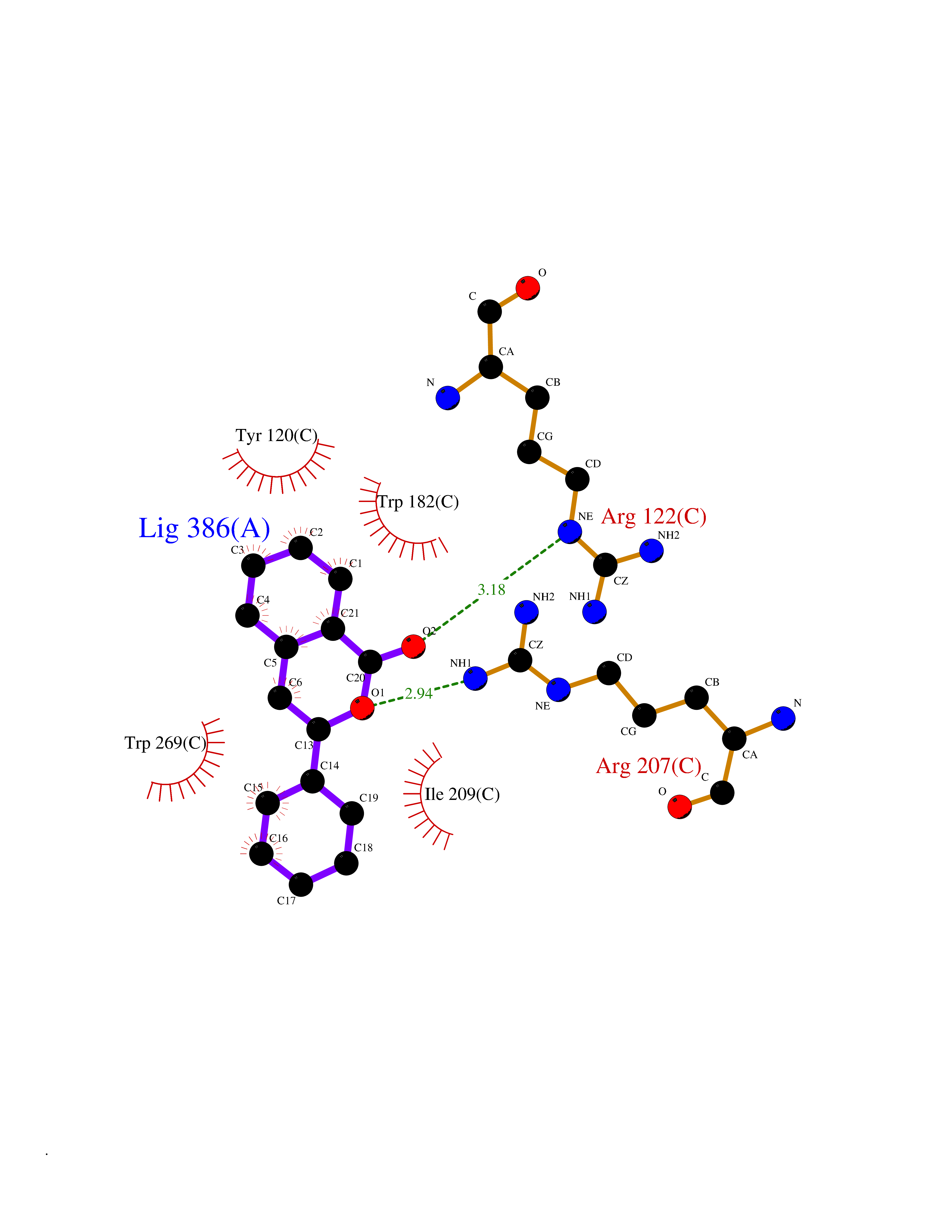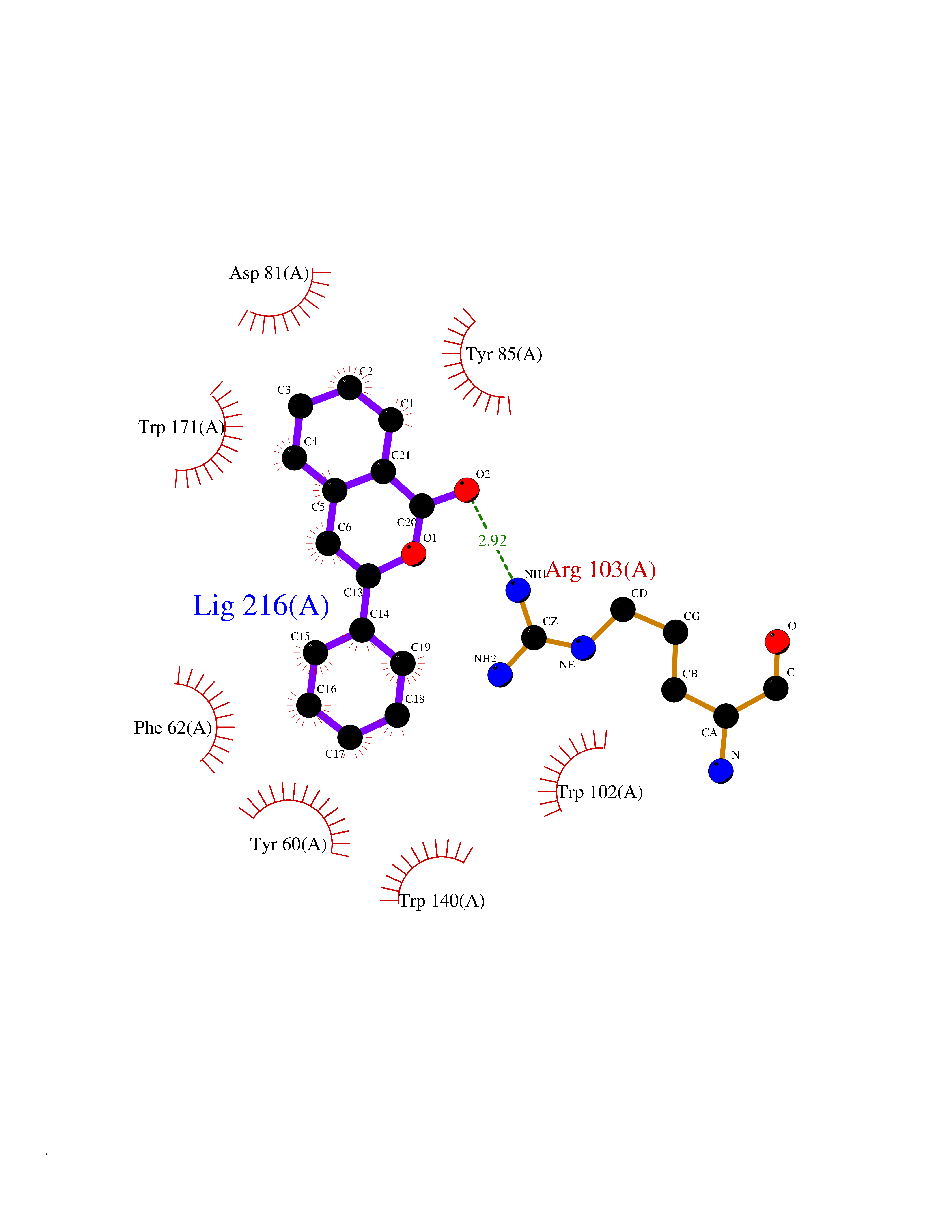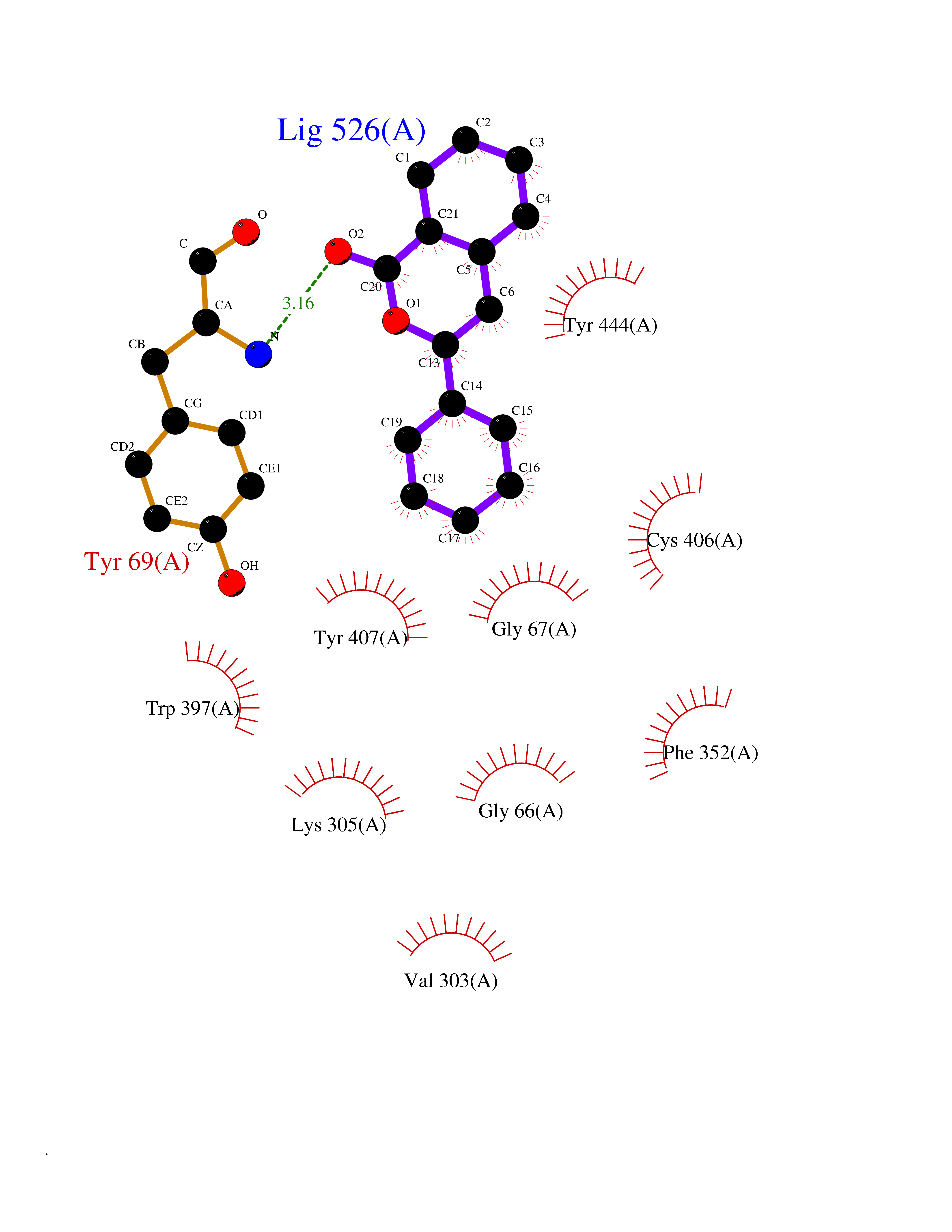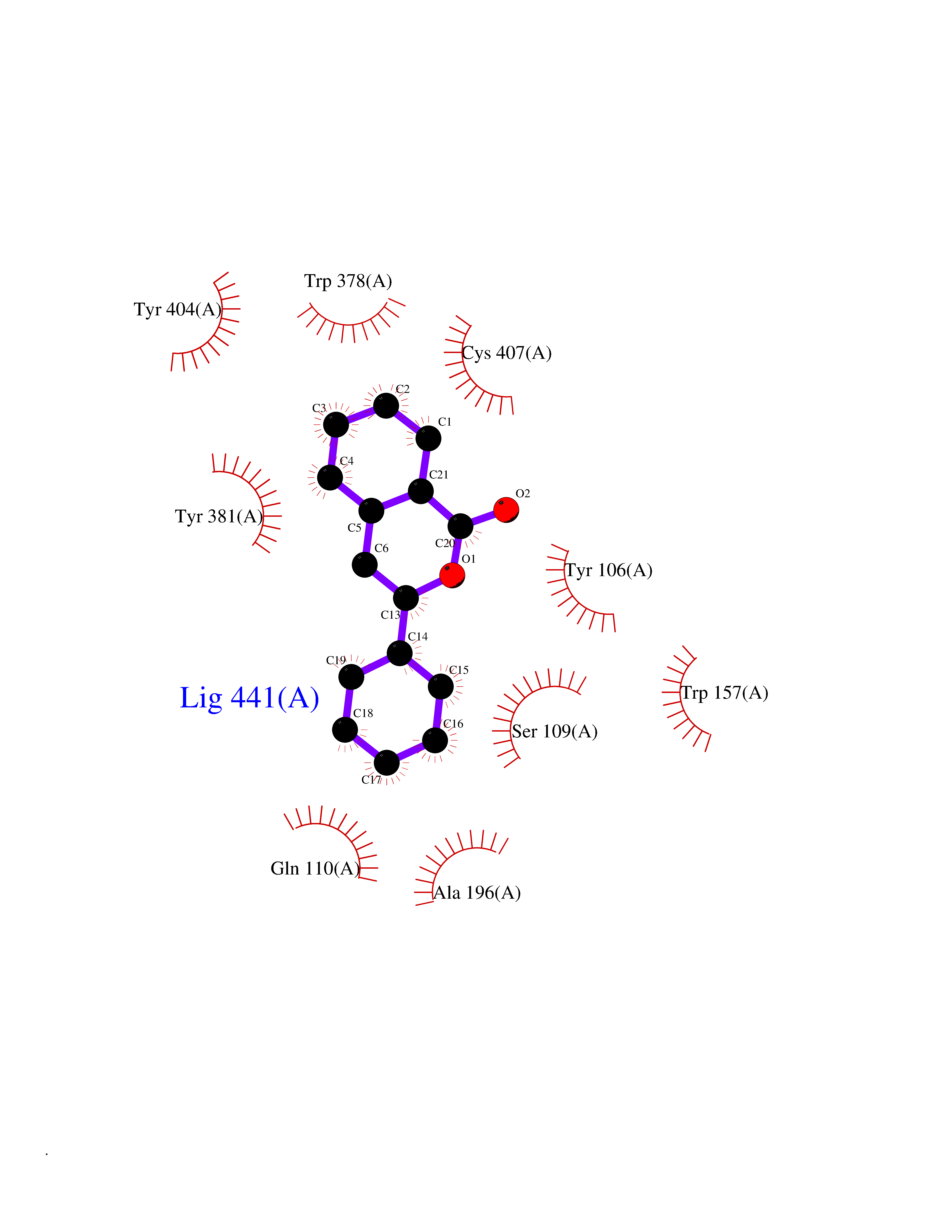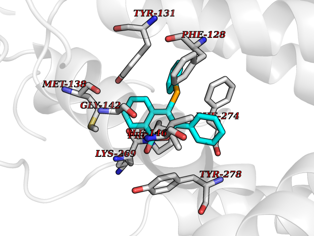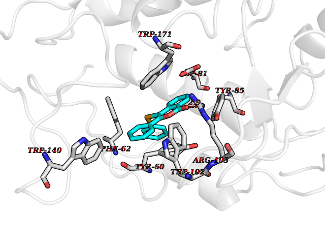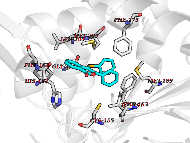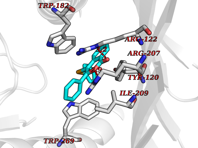 Target general information Gen name MAOA Organism Homo sapiens (Human) Uniprot ID TTD ID Synonyms Monoamine oxidase A; Amine oxidase [flavin-containing] A Protein family Flavin monoamine oxidase family Biochemical class CH-NH(2) donor oxidoreductase Function MAOA preferentially oxidizes biogenic amines such as 5-hydroxytryptamine (5-HT), norepinephrine and epinephrine. Catalyzes the oxidative deamination of biogenic and xenobiotic amines and has important functions in the metabolism of neuroactive and vasoactive amines in the central nervous system and peripheral tissues. Related diseases Brunner syndrome (BRNRS) [MIM:300615]: A form of X-linked non-dysmorphic mild intellectual disability. Male patients are affected by borderline intellectual deficit and exhibit abnormal behavior, including disturbed regulation of impulsive aggression. Obligate female carriers have normal intelligence and behavior. {ECO:0000269|PubMed:8211186}. The disease is caused by variants affecting the gene represented in this entry. Drugs (DrugBank ID) DB01472; DB00918; DB00182; DB06698; DB04889; DB13876; DB01445; DB06774; DB00215; DB04017; DB09130; DB05205; DB07641; DB00988; DB01363; DB00668; DB12329; DB01175; DB03147; DB14914; DB00614; DB01381; DB07919; DB04818; DB01247; DB00601; DB01577; DB00805; DB01442; DB01171; DB08804; DB00952; DB04820; DB00184; DB04821; DB06412; DB01626; DB00780; DB00191; DB00388; DB00397; DB09244; DB04850; DB00721; DB01168; DB00571; DB00852; DB09363; DB00140; DB00953; DB06654; DB01037; DB01104; DB00669; DB14569; DB09042; DB00624; DB13943; DB13944; DB13946; DB09245; DB00752; DB15328; DB09185; DB04832; DB00315; DB00909 Interacts with P27338 EC number EC 1.4.3.4 Uniprot keywords 3D-structure; Acetylation; Alternative splicing; Catecholamine metabolism; Direct protein sequencing; Disease variant; FAD; Flavoprotein; Intellectual disability; Membrane; Mitochondrion; Mitochondrion outer membrane; Neurotransmitter degradation; Oxidoreductase; Phosphoprotein; Proteomics identification; Reference proteome; Transmembrane; Transmembrane helix Protein physicochemical properties Chain ID A Molecular weight (Da) 58195.3 Length 513 Aromaticity 0.11 Instability index 34.97 Isoelectric point 7.98 Charge (pH=7) 2.87 3D Binding mode Sequence HMFDVVVIGGGISGLSAAKLLTEYGVSVLVLEARDRVGGRTYTIRNEHVDYVDVGGAYVGPTQNRILRLSKELGIETYKVNVSERLVQYVKGKTYPFRAAFPPVWNPIAYLDYNNLWRTIDNMGKEIPTDAPWEAQHADKWDKMTMKELIDKICWTKTARRFAYLFVNINVTSEPHEVSALWFLWYVKQCGGTTRIFSVTNGGQERKFVGGSGQVSERIMDLLGDQVKLNHPVTHVDQSSDNIIIETLNHEHYECKYVINAIPPTLTAKIHFRPELPAERNQLIQRLPMGAVIKCMMYYKEAFWKKKDYCGCMIIEDEDAPISITLDDTKPDGSLPAIMGFILARKADRLAKLHKEIRKKKICELYAKVLGSQEALHPVHYEEKNWCEEQYSGGCYTAYFPPGIMTQYGRVIRQPVGRIFFAGTETATKWSGYMEGAVEAGERAAREVLNGLGKVTEKDIWVQEPESKDVPAVEITHTFWERNLPSVSGLLKIIGFSTSVTALGFVLYKYKLL Hydrogen bonds contact Hydrophobic contact | ||||