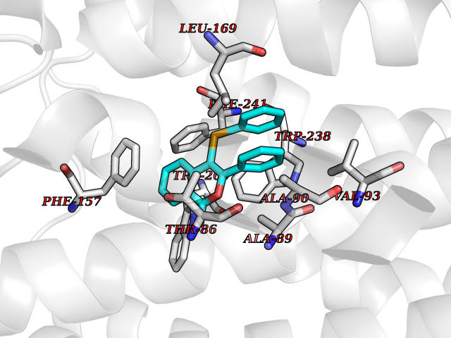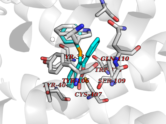 Target general information Gen name CHRM1 Organism Homo sapiens (Human) Uniprot ID TTD ID Synonyms M1 receptor Protein family G-protein coupled receptor 1 family, Muscarinic acetylcholine receptor subfamily, CHRM1 sub-subfamily Biochemical class GPCR rhodopsin Function Primary transducing effect is Pi turnover. The muscarinic acetylcholine receptor mediates various cellular responses, including inhibition of adenylate cyclase, breakdown of phosphoinositides and modulation of potassium channels through the action of G proteins. Related diseases Pyruvate dehydrogenase E1-beta deficiency (PDHBD) [MIM:614111]: An enzymatic defect causing primary lactic acidosis in children. It is associated with a broad clinical spectrum ranging from fatal lactic acidosis in the newborn to chronic neurologic dysfunction with structural abnormalities in the central nervous system without systemic acidosis. {ECO:0000269|PubMed:15138885}. The disease is caused by variants affecting the gene represented in this entry. Drugs (DrugBank ID) DB03128; DB08897; DB05752; DB00321; DB00543; DB00517; DB04365; DB01238; DB14185; DB00572; DB00245; DB00767; DB01019; DB00810; DB09128; DB00835; DB00354; DB00411; DB00185; DB00477; DB01239; DB00568; DB00771; DB00363; DB00907; DB00979; DB00942; DB00434; DB00496; DB01151; DB00804; DB01231; DB00280; DB09167; DB01142; DB00366; DB01175; DB09194; DB06702; DB01148; DB00875; DB00483; DB00986; DB06787; DB11181; DB00725; DB00424; DB09262; DB00458; DB00332; DB01221; DB00408; DB00934; DB04843; DB00454; DB06709; DB00940; DB01403; DB00462; DB00340; DB01233; DB00805; DB01618; DB05152; DB00622; DB05766; DB00540; DB00334; DB01062; DB00383; DB00219; DB00715; DB01085; DB00670; DB06153; DB00387; DB00392; DB00420; DB01069; DB00782; DB00777; DB12278; DB11156; DB01224; DB11855; DB13581; DB00747; DB01591; DB02010; DB00342; DB11235; DB01409; DB01036; DB00193; DB00505; DB00508; DB00376; DB09089; DB00726; DB00809; DB00209; DB09076; DB09185; DB00246 Interacts with NA EC number NA Uniprot keywords 3D-structure; Alternative splicing; Cell membrane; Disulfide bond; G-protein coupled receptor; Glycoprotein; Membrane; Phosphoprotein; Postsynaptic cell membrane; Proteomics identification; Receptor; Reference proteome; Synapse; Transducer; Transmembrane; Transmembrane helix Protein physicochemical properties Chain ID A Molecular weight (Da) 33337 Length 291 Aromaticity 0.15 Instability index 26.7 Isoelectric point 8.75 Charge (pH=7) 5.76 3D Binding mode Sequence KGPWQVAFIGITTGLLSLATVTGNLLVLISFKVNTELKTVNNYFLLSLACADLIIGTFSMNLYTTYLLMGHWALGTLACDLWLALDYVASQASVMNLLLISFDRYFSVTRPLSYRAKRTPRRAALMIGLAWLVSFVLWAPAILFWQYLVGERTVLAGQCYIQFLSQPIITFGTAMAAFYLPVTVMCTLYWRIYRETENRFSLVKEKKAARTLSAILLAFILTWTPYNIMVLVSTFCKDCVPETLWELGYWLCYVNSTINPMCYALCNKAFRDTFRLLLLCRWDKDYKDDDD Hydrogen bonds contact Hydrophobic contact | ||||