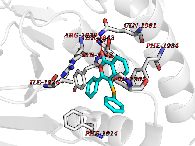 Target general information Gen name MT-CYB Organism Bos taurus (Bovine) Uniprot ID TTD ID NA Synonyms CYTB;MTCYB;COB Protein family Cytochrome b family Biochemical class NA Function Component of the ubiquinol-cytochrome c reductase complex (complex III or cytochrome b-c1 complex) that is part of the mitochondrial respiratory chain. The b-c1 complex mediates electron transfer from ubiquinol to cytochrome c. Contributes to the generation of a proton gradient across the mitochondrial membrane that is then used for ATP synthesis. {ECO:0000269|PubMed:1327781, ECO:0000269|PubMed:20025846, ECO:0000269|PubMed:9485330, ECO:0000305|PubMed:189810}." Related diseases Combined oxidative phosphorylation deficiency 6 (COXPD6) [MIM:300816]: A mitochondrial disease resulting in a neurodegenerative disorder characterized by psychomotor delay, hypotonia, areflexia, muscle weakness and wasting. Some patients manifest prenatal ventriculomegaly and severe postnatal encephalomyopathy. {ECO:0000269|PubMed:20362274, ECO:0000269|PubMed:22019070, ECO:0000269|PubMed:25583628, ECO:0000269|PubMed:26004228, ECO:0000269|PubMed:26173962, ECO:0000269|PubMed:27178839}. The disease is caused by variants affecting the gene represented in this entry.; DISEASE: Charcot-Marie-Tooth disease, X-linked recessive, 4, with or without cerebellar ataxia (CMTX4) [MIM:310490]: A neuromuscular disorder characterized by progressive sensorimotor axonal neuropathy, distal sensory impairment, difficulty walking due to peripheral neuropathy and/or cerebellar ataxia, and deafness due to auditory neuropathy. Additional features include cognitive impairment, cerebellar atrophy, dysarthria, abnormal extraocular movements, tremor, dysmetria and spasticity. The age at onset ranges from infancy to young adulthood. {ECO:0000269|PubMed:23217327, ECO:0000269|PubMed:26004228}. The disease is caused by variants affecting the gene represented in this entry.; DISEASE: Deafness, X-linked, 5, with peripheral neuropathy (DFNX5) [MIM:300614]: A form of hearing loss characterized by absent or severely abnormal auditory brainstem response, abnormal middle ear reflexes, abnormal speech discrimination, loss of outer hair cell function, and cochlear nerve hypoplasia. DFNX5 patients manifest auditory neuropathy with childhood onset, associated with distal sensory impairment affecting the peripheral nervous system. {ECO:0000269|PubMed:25986071}. The disease is caused by variants affecting the gene represented in this entry.; DISEASE: Spondyloepimetaphyseal dysplasia, X-linked, with hypomyelinating leukodystrophy (SEMDHL) [MIM:300232]: An X-linked recessive developmental disorder characterized by slowly progressive skeletal and neurologic abnormalities, including short stature, large and deformed joints, significant motor impairment, visual defects, and sometimes cognitive deficits. Affected individuals typically have normal early development in the first year or so of life, followed by development regression and the development of symptoms. Brain imaging shows white matter abnormalities consistent with hypomyelinating leukodystrophy. {ECO:0000269|PubMed:28842795}. The disease is caused by variants affecting the gene represented in this entry. Drugs (DrugBank ID) NA Interacts with NA EC number NA Uniprot keywords 3D-structure; Electron transport; Heme; Iron; Membrane; Metal-binding; Mitochondrion; Mitochondrion inner membrane; Reference proteome; Respiratory chain; Transmembrane; Transmembrane helix; Transport; Ubiquinone Protein physicochemical properties Chain ID C,D,F,G,H Molecular weight (Da) 99281.2 Length 866 Aromaticity 0.12 Instability index 43.81 Isoelectric point 8.32 Charge (pH=7) 7.12 3D Binding mode Sequence VSASSRWLEGIRKWYYNAAGFNKLGLMRDDTIHENDDVKEAIRRLPENLYDDRVFRIKRALDLSMRQQILPKEQWTKYEEDKSYLEPYLKEVIRERKEREEWAKKELVDPLTTVREQCEQLEKCVKARERLELCDERVSSRSQTEEDCTEELLDFLHARDHCVAHKLFNSLKTNIRKSHPLMKIVNNAFIDLPAPSNISSWWNFGSLLGICLILQILTGLFLAMHYTSDTTTAFSSVTHICRDVNYGWIIRYMHANGASMFFICLYMHVGRGLYYGSYTFLETWNIGVILLLTVMATAFMGYVLPWGQMSFWGATVITNLLSAIPYIGTNLVEWIWGGFSVDKATLTRFFAFHFILPFIIMAIAMVHLLFLHETGSNNPTGISSDVDKIPFHPYYTIKDILGALLLILALMLLVLFAPDLLGDPDNYTPANPLNTPPHIKPEWYFLFAYAILRSIPNKLGGVLALAFSILILALIPLLHTSKQRSMMFRPLSQCLFWALVADLLTLTWIGGQPVEHPYITIGQLASVLYFLLILVLMPTAGTIENKLLKWSDLELHPPSYPWSHRGLLSSLDHTSIRRGFQVYKQVCSSCHSMDYVAYRHLVGVCYTEDEAKALAEEVEVQDGPNEDGEMFMRPGKLSDYFPKPYPNPEAARAANNGALPPDLSYIVRARHGGEDYVFSLLTGYCEPPTGVSLREGLYFNPYFPGQAIGMAPPIYNEVLEFDDGTPATMSQVAKDVCTFLRWAAEPEHDHRKRMGLKMLLMMGLLLPLVYAMKRHKWSVLKSRKLAYRPPKGRQFGHLTRVRHVITYSLSPFEQRAFPHYFSKGIPNVLRRTRACILRVAPPFVAFYLVYTWGTQEFEKSKRKNPA Hydrogen bonds contact Hydrophobic contact | ||||