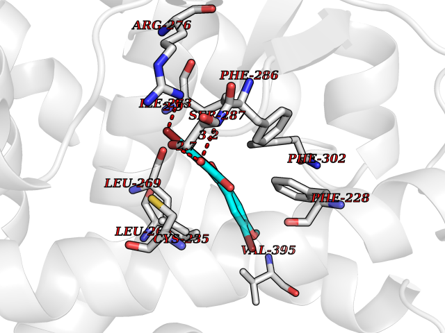 Target general information Gen name CYP46A1 Organism Homo sapiens (Human) Uniprot ID TTD ID Synonyms Cytochrome P450 46A1; CYP46; Cholesterol 24S-hydroxylase; Cholesterol 24-monooxygenase; CH24H Protein family Cytochrome P450 family Biochemical class Paired donor oxygen oxidoreductase Function Primarily catalyzes the hydroxylation (with S stereochemistry) at C-24 of cholesterol side chain, triggering cholesterol diffusion out of neurons and its further degradation. By promoting constant cholesterol elimination in neurons, may activate the mevalonate pathway and coordinate the synthesis of new cholesterol and nonsterol isoprenoids involved in synaptic activity and learning. Further hydroxylates cholesterol derivatives and hormone steroids on both the ring and side chain of these molecules, converting them into active oxysterols involved in lipid signaling and biosynthesis. Acts as an epoxidase converting cholesta-5,24-dien-3beta-ol/desmosterol into (24S),25-epoxycholesterol, an abundant lipid ligand of nuclear NR1H2 and NR1H3 receptors shown to promote neurogenesis in developing brain. May also catalyze the oxidative metabolism of xenobiotics, such as clotrimazole. P450 monooxygenase that plays a major role in cholesterol homeostasis in the brain. Related diseases Spinocerebellar ataxia, autosomal recessive, with axonal neuropathy 1 (SCAN1) [MIM:607250]: A form of spinocerebellar ataxia, a clinically and genetically heterogeneous group of cerebellar disorders. Patients show progressive incoordination of gait and often poor coordination of hands, speech and eye movements, due to degeneration of the cerebellum with variable involvement of the brainstem and spinal cord. SCAN1 is an autosomal recessive cerebellar ataxia (ARCA) associated with peripheral axonal motor and sensory neuropathy, distal muscular atrophy, pes cavus and steppage gait as seen in Charcot-Marie-Tooth neuropathy. All affected individuals have normal intelligence. {ECO:0000269|PubMed:12244316, ECO:0000269|PubMed:15647511, ECO:0000269|PubMed:15920477, ECO:0000269|PubMed:16141202, ECO:0000269|PubMed:17948061}. The disease is caused by variants affecting the gene represented in this entry. Drugs (DrugBank ID) NA Interacts with NA EC number EC 1.14.14.25 Uniprot keywords 3D-structure; Alternative splicing; Cell projection; Cholesterol metabolism; Endoplasmic reticulum; Heme; Iron; Lipid metabolism; Membrane; Metal-binding; Microsome; Monooxygenase; Oxidoreductase; Proteomics identification; Reference proteome; Steroid metabolism; Sterol metabolism; Synapse; Transmembrane; Transmembrane helix Protein physicochemical properties Chain ID A Molecular weight (Da) 48977 Length 427 Aromaticity 0.1 Instability index 49.59 Isoelectric point 9.04 Charge (pH=7) 6.25 3D Binding mode Sequence RVLQDVFLDWAKKYGPVVRVNVFHKTSVIVTSPESVKKFLMSTKYNKDSKMYRALQTVFGERLFGQGLVSECNYERWHKQRRVIDLAFSRSSLVSLMETFNEKAEQLVEILEAKADGQTPVSMQDMLTYTAMDILAKAAFGMETSMLLGAQKPLSQAVKLMLEGITASRNTKRKQLREVRESIRFLRQVGRDWVQRRREALKRGEEVPADILTQILKAEEGAQDDEGLLDNFVTFFIAGHETSANHLAFTVMELSRQPEIVARLQAEVDEVIGSKRYLDFEDLGRLQYLSQVLKESLRLYPPAWGTFRLLEEETLIDGVRVPGNTPLLFSTYVMGRMDTYFEDPLTFNPDRFGPGAPKPRFTYFPFSLGHRSCIGQQFAQMEVKVVMAKLLQRLEFRLVPGQRFGLQEQATLKPLDPVLCTLRPRGW Hydrogen bonds contact Hydrophobic contact | ||||