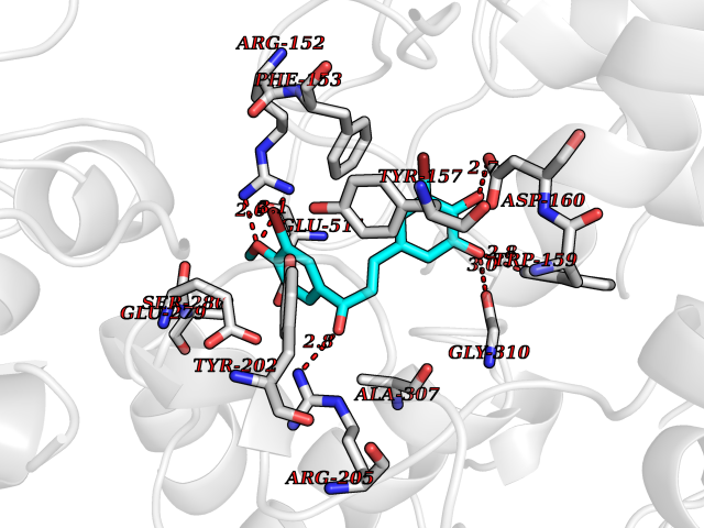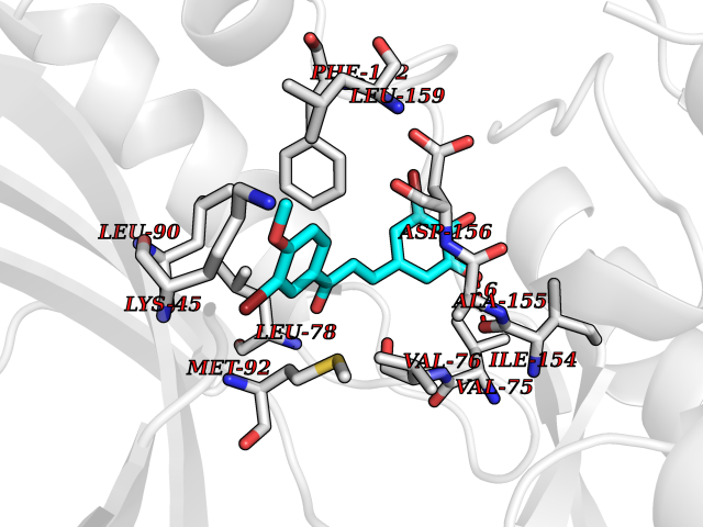 Target general information Gen name Pseudo LasR Organism Pseudomonas aeruginosa (strain ATCC 15692 / DSM 22644 / CIP 104116 / JCM 14847 / LMG 12228 / 1C / PRS 101 / PAO1) Uniprot ID TTD ID Synonyms NA Protein family Autoinducer-regulated transcriptional regulatory protein family Biochemical class NA Function Transcriptional activator of elastase structural gene (LasB). Binds to the PAI autoinducer. Related diseases Growth hormone deficiency, isolated, 1A (IGHD1A) [MIM:262400]: An autosomal recessive, severe deficiency of growth hormone leading to dwarfism. Patients often develop antibodies to administered growth hormone. {ECO:0000269|PubMed:8364549}. The disease is caused by variants affecting the gene represented in this entry.; DISEASE: Growth hormone deficiency, isolated, 1B (IGHD1B) [MIM:612781]: An autosomal recessive deficiency of growth hormone leading to short stature. Patients have low but detectable levels of growth hormone, significantly retarded bone age, and a positive response and immunologic tolerance to growth hormone therapy. {ECO:0000269|PubMed:12655557}. The disease is caused by variants affecting the gene represented in this entry.; DISEASE: Kowarski syndrome (KWKS) [MIM:262650]: A syndrome clinically characterized by short stature associated with bioinactive growth hormone, normal or slightly increased growth hormone secretion, pathologically low insulin-like growth factor 1 levels, and normal catch-up growth on growth hormone replacement therapy. {ECO:0000269|PubMed:17519310, ECO:0000269|PubMed:8552145, ECO:0000269|PubMed:9276733}. The disease is caused by variants affecting the gene represented in this entry.; DISEASE: Growth hormone deficiency, isolated, 2 (IGHD2) [MIM:173100]: An autosomal dominant deficiency of growth hormone leading to short stature. Clinical severity is variable. Patients have a positive response and immunologic tolerance to growth hormone therapy. {ECO:0000269|PubMed:11502836, ECO:0000269|PubMed:9152628}. The disease is caused by variants affecting the gene represented in this entry. Drugs (DrugBank ID) DB08324 Interacts with NA EC number NA Uniprot keywords 3D-structure; Activator; DNA-binding; Quorum sensing; Reference proteome; Transcription; Transcription regulation Protein physicochemical properties Chain ID A Molecular weight (Da) 18305.5 Length 163 Aromaticity 0.12 Instability index 46.52 Isoelectric point 5.19 Charge (pH=7) -6.78 3D Binding mode Sequence FLELERSSGKLEWSAILQKMASDLGFSKILFGLLPKDSQDYENAFIVGNYPAAWREHYDRAGYARVDPTVSHCTQSVLPIFWEPSIYQTRKQHEFFEEASAAGLVYGLTMPLHGARGELGALSLSVEAENRAEANRFMESVLPTLWMLKDYALQSGAGLAFEH Hydrogen bonds contact Hydrophobic contact | ||||
