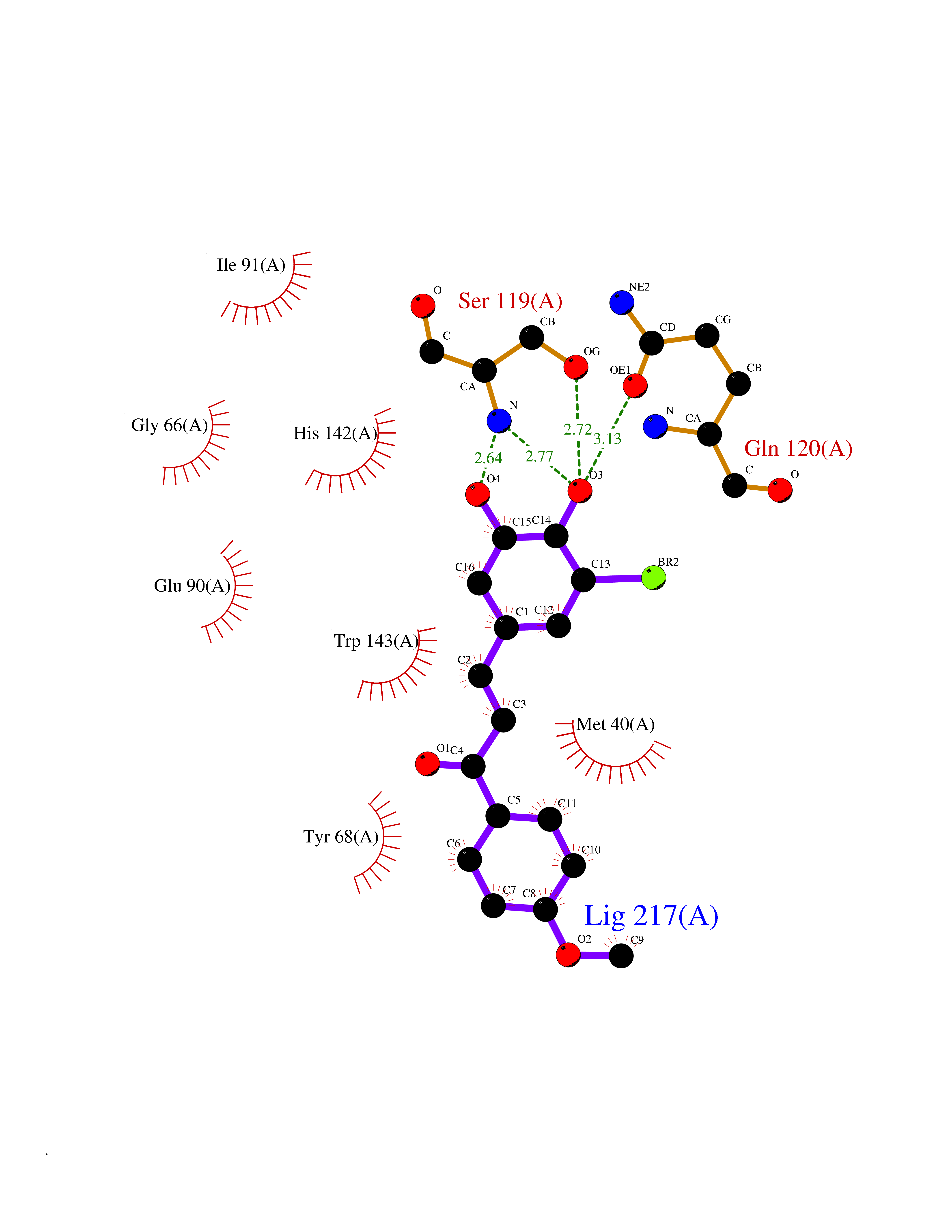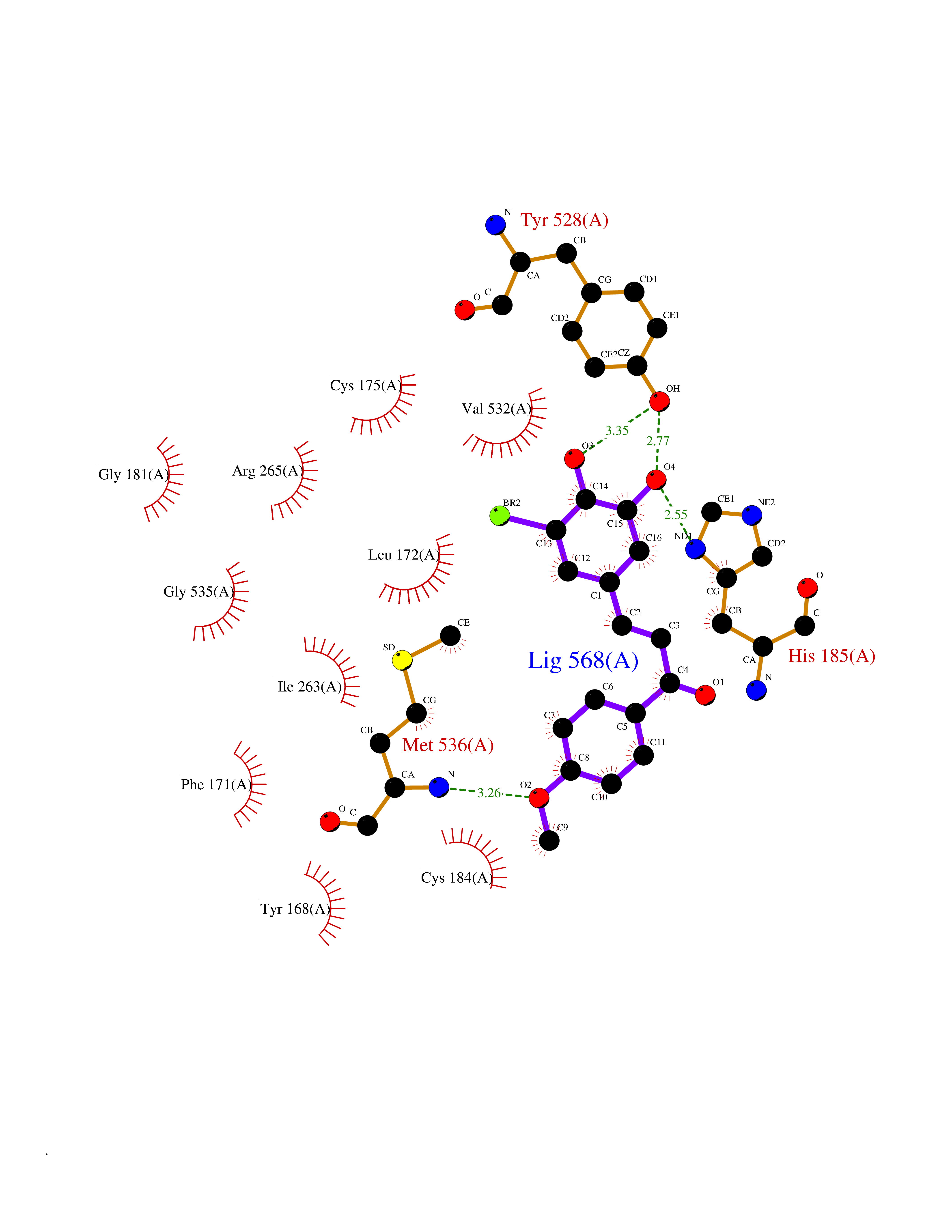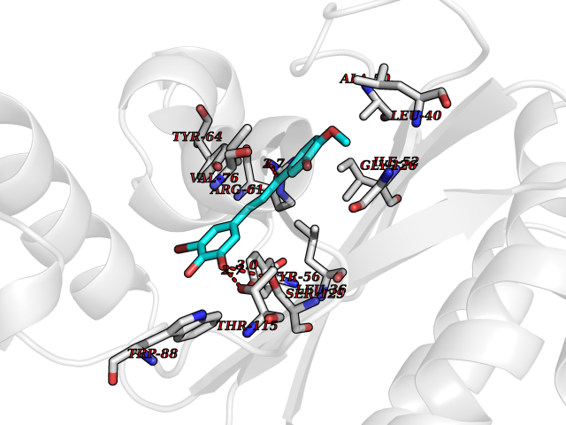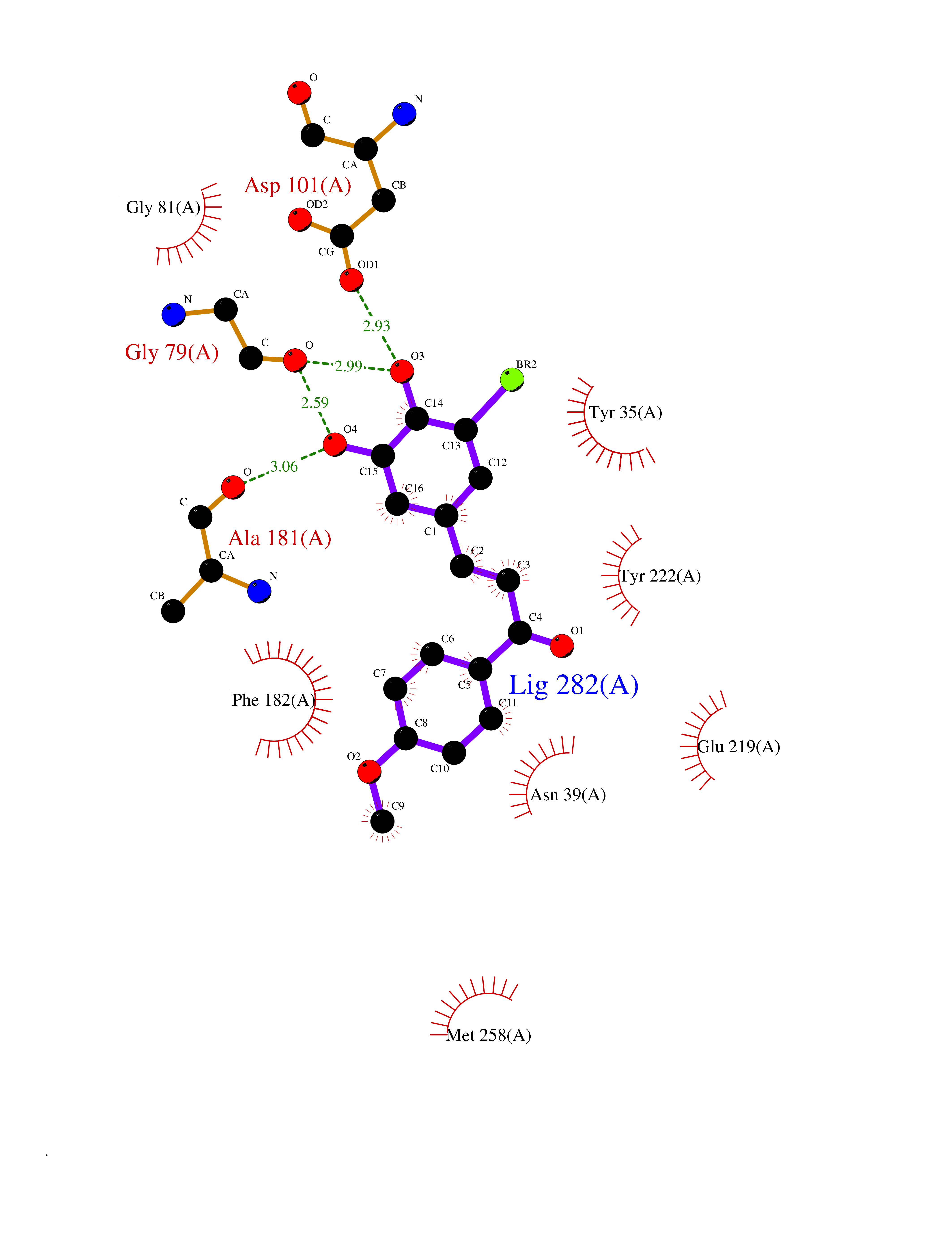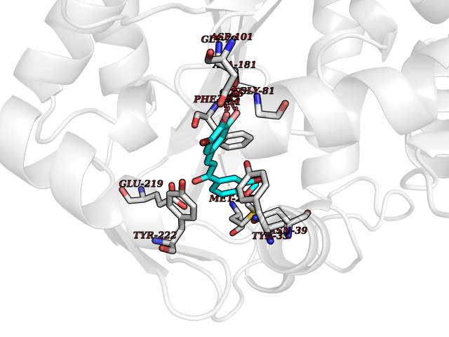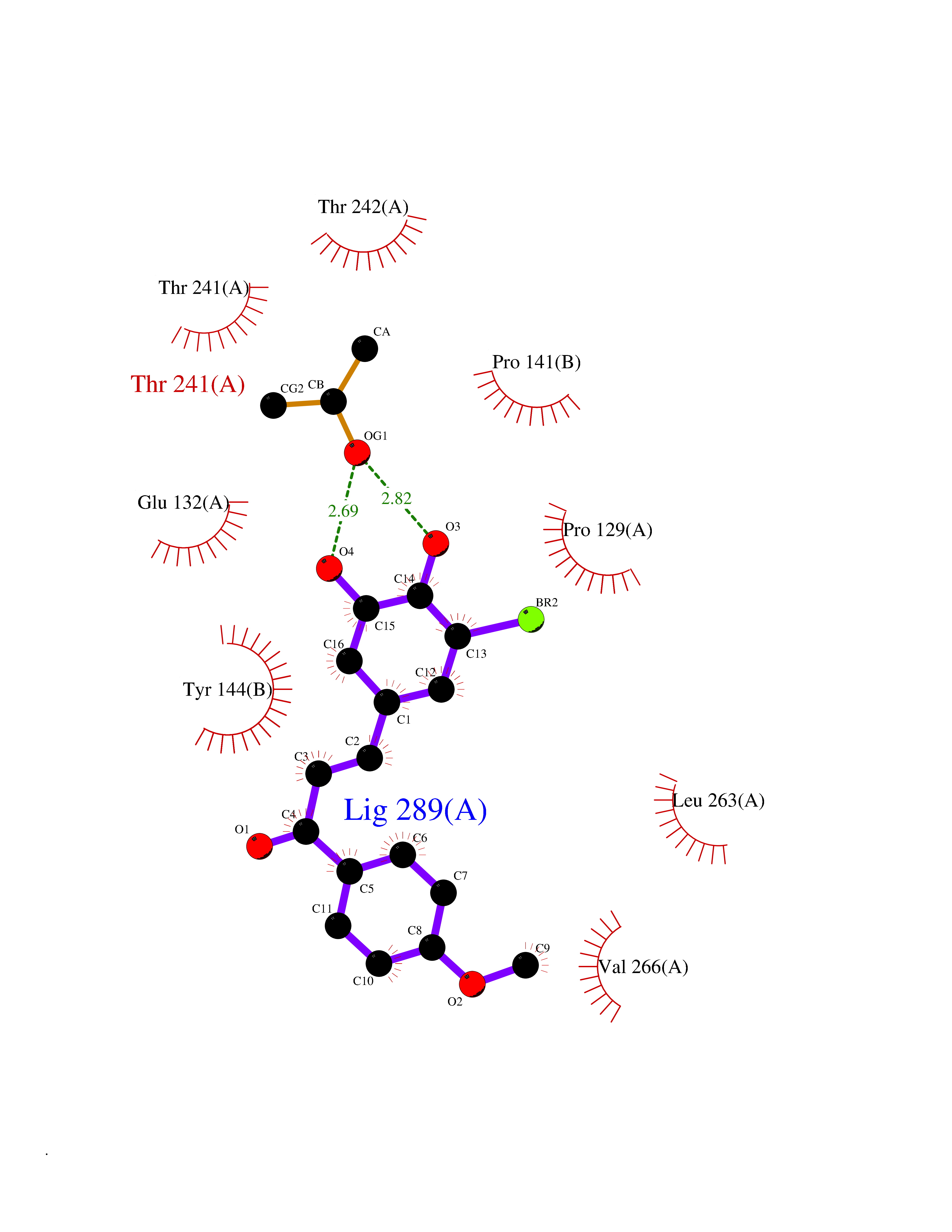 Target general information Gen name PNMT Organism Homo sapiens (Human) Uniprot ID TTD ID Synonyms PNMTase; PENT; Noradrenaline N-methyltransferase Protein family Class I-like SAM-binding methyltransferase superfamily, NNMT/PNMT/TEMT family Biochemical class NA Function Converts noradrenaline to adrenaline. Related diseases A chromosomal aberration involving TRIM24/TIF1 is found in papillary thyroid carcinomas (PTCs). Translocation t(7;10)(q32;q11) with RET. The translocation generates the TRIM24/RET (PTC6) oncogene. {ECO:0000269|PubMed:10439047}. Drugs (DrugBank ID) DB08129; DB08128; DB07739; DB07798; DB07747; DB03468; DB08550; DB03824; DB04273; DB07906; DB07597; DB09571; DB00968; DB08631; DB01752; DB08654 Interacts with Q9P2G9-2; Q8TBB1 EC number EC 2.1.1.28 Uniprot keywords 3D-structure; Catecholamine biosynthesis; Direct protein sequencing; Methyltransferase; Phosphoprotein; Proteomics identification; Reference proteome; S-adenosyl-L-methionine; Transferase Protein physicochemical properties Chain ID A Molecular weight (Da) 29198.9 Length 264 Aromaticity 0.09 Instability index 54.33 Isoelectric point 5.91 Charge (pH=7) -3.69 3D Binding mode Sequence APGQAAVASAYQRFEPRAYLRNNYAPPRGDLCNPNGVGPWKLRCLAQTFATGEVSGRTLIDIGSGPTVYQLLSACSHFEDITMTDFLEVNRQELGRWLQEEPGAFNWSMYSQHACLIEGKGECWQDKERQLRARVKRVLPIDVHQPQPLGAGSPAPLPADALVSAFCLEAVSPDLASFQRALDHITTLLRPGGHLLLIGALEESWYLAGEARLTVVPVSEEEVREALVRSGYKVRDLRTYIMPAHLQTGVDDVKGVFFAWAQKV Hydrogen bonds contact Hydrophobic contact | ||||