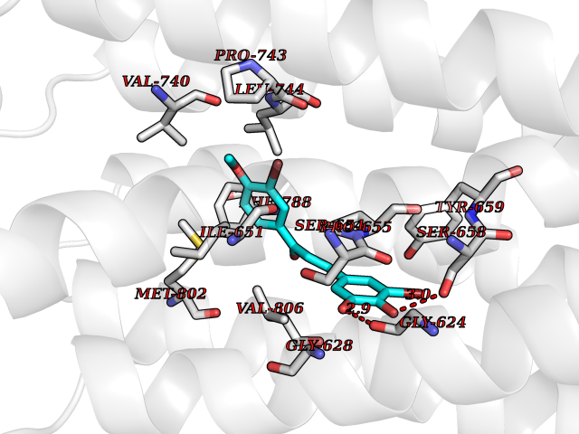 Target general information Gen name THRA Organism Homo sapiens (Human) Uniprot ID TTD ID Synonyms V-erbA-related protein 7; THRA2; THRA1; Nuclear receptor subfamily 1 group A member 1; NR1A1; ERBA1; EAR7; EAR-7; C-erbA-alpha; C-erbA-1 Protein family Nuclear hormone receptor family, NR1 subfamily Biochemical class Nuclear hormone receptor Function High affinity receptor for thyroid hormones, including triiodothyronine and thyroxine. Isoform Alpha-1: Nuclear hormone receptor that can act as a repressor or activator of transcription. Related diseases Hypothyroidism, congenital, non-goitrous, 6 (CHNG6) [MIM:614450]: A disease characterized by growth retardation, developmental retardation, skeletal dysplasia, borderline low thyroxine levels and high triiodothyronine levels. There is differential sensitivity to thyroid hormone action, with retention of hormone responsiveness in the hypothalamic pituitary axis and liver but skeletal, gastrointestinal, and myocardial resistance. {ECO:0000269|PubMed:22168587, ECO:0000269|PubMed:24969835, ECO:0000269|PubMed:25670821, ECO:0000269|PubMed:26037512}. The disease is caused by variants affecting the gene represented in this entry. Drugs (DrugBank ID) DB01118; DB00509; DB04855; DB05035; DB03176; DB00451; DB00279; DB01583; DB05235; DB09100 Interacts with Q9Y2J4; Q9Y2J4-4; O95971; Q8TAP6; Q96JM7; Q15648; Q6FHY5; P31321; Q96A49; O75410-7; Q9JLI4 EC number NA Uniprot keywords 3D-structure; Alternative splicing; Congenital hypothyroidism; Cytoplasm; Disease variant; DNA-binding; Metal-binding; Nucleus; Proteomics identification; Receptor; Reference proteome; Transcription; Transcription regulation; Zinc; Zinc-finger Protein physicochemical properties Chain ID A Molecular weight (Da) 29910.1 Length 267 Aromaticity 0.07 Instability index 52.75 Isoelectric point 5.31 Charge (pH=7) -11.32 3D Binding mode Sequence GSHMEEMIRSLQQRPEPTPEEWDLIHIATEAHRSTNAQGSHWKQRRKFLPDDIGQSPIVSMPDGDKVDLEAFSEFTKIITPAITRVVDFAKKLPMFSELPXEDQIILLKGCCMEIMSLRAAVRYDPESDTLTLSGEMAVKREQLKNGGLGVVSDAIFELGKSLSAFNLDDTEVALLQAVLLMSTDRSGLLXVDKIEKSQEAYLLAFEHYVNHRKHNIPHFWPKLLMKVTDLRMIGAXHASRFLHMKVEXPTELFPPLFLEVFEDQEV Hydrogen bonds contact Hydrophobic contact | ||||