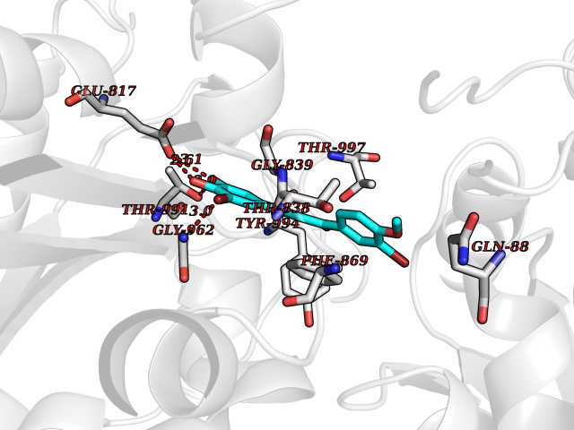 Target general information Gen name HRAS Organism Homo sapiens (Human) Uniprot ID TTD ID Synonyms p21ras; cHras; c-H-ras; Transforming protein p21; HaRas; Ha-Ras; H-Ras-1; GTPase HRas, Nterminally processed Protein family Small GTPase superfamily, Ras family Biochemical class Small GTPase Function Ras proteins bind GDP/GTP and possess intrinsic GTPase activity. Involved in the activation of Ras protein signal transduction. Related diseases Costello syndrome (CSTLO) [MIM:218040]: A rare condition characterized by prenatally increased growth, postnatal growth deficiency, intellectual disability, distinctive facial appearance, cardiovascular abnormalities (typically pulmonic stenosis, hypertrophic cardiomyopathy and/or atrial tachycardia), tumor predisposition, skin and musculoskeletal abnormalities. {ECO:0000269|PubMed:16170316, ECO:0000269|PubMed:16329078, ECO:0000269|PubMed:16443854, ECO:0000269|PubMed:17054105, ECO:0000269|PubMed:18039947, ECO:0000269|PubMed:18247425, ECO:0000269|PubMed:19995790}. The disease is caused by variants affecting the gene represented in this entry.; DISEASE: Congenital myopathy with excess of muscle spindles (CMEMS) [MIM:218040]: Variant of Costello syndrome. {ECO:0000269|PubMed:17412879}. The disease is caused by variants affecting the gene represented in this entry.; DISEASE: Thyroid cancer, non-medullary, 2 (NMTC2) [MIM:188470]: A form of non-medullary thyroid cancer (NMTC), a cancer characterized by tumors originating from the thyroid follicular cells. NMTCs represent approximately 95% of all cases of thyroid cancer and are classified into papillary, follicular, Hurthle cell, and anaplastic neoplasms. {ECO:0000269|PubMed:12727991}. Disease susceptibility is associated with variants affecting the gene represented in this entry.; DISEASE: Mutations which change positions 12, 13 or 61 activate the potential of HRAS to transform cultured cells and are implicated in a variety of human tumors. {ECO:0000269|PubMed:3670300}.; DISEASE: Bladder cancer (BLC) [MIM:109800]: A malignancy originating in tissues of the urinary bladder. It often presents with multiple tumors appearing at different times and at different sites in the bladder. Most bladder cancers are transitional cell carcinomas that begin in cells that normally make up the inner lining of the bladder. Other types of bladder cancer include squamous cell carcinoma (cancer that begins in thin, flat cells) and adenocarcinoma (cancer that begins in cells that make and release mucus and other fluids). Bladder cancer is a complex disorder with both genetic and environmental influences. {ECO:0000269|PubMed:6298635, ECO:0000269|PubMed:6844927}. Disease susceptibility is associated with variants affecting the gene represented in this entry.; DISEASE: Schimmelpenning-Feuerstein-Mims syndrome (SFM) [MIM:163200]: A disease characterized by sebaceous nevi, often on the face, associated with variable ipsilateral abnormalities of the central nervous system, ocular anomalies, and skeletal defects. Many oral manifestations have been reported, not only including hypoplastic and malformed teeth, and mucosal papillomatosis, but also ankyloglossia, hemihyperplastic tongue, intraoral nevus, giant cell granuloma, ameloblastoma, bone cysts, follicular cysts, oligodontia, and odontodysplasia. Sebaceous nevi follow the lines of Blaschko and these can continue as linear intraoral lesions, as in mucosal papillomatosis. {ECO:0000269|PubMed:22683711}. The disease is caused by variants affecting the gene represented in this entry. Drugs (DrugBank ID) DB04315; DB04137; DB02210; DB08751; DB03226; DB15588 Interacts with Q99996-3; P53677-2; P10398; Q9NXL2-1; Q9UII2; Q9H7T9; Q00994; Q9H2G9; P15056; Q7Z569; Q5PSV4; Q9ULD4-2; Q96LL4; Q96HB5; Q49A88-3; Q96GN5-2; P24941; O95674; Q9H3R5; Q9Y4F5-3; Q86XR8; Q494V2-2; Q8WUX9; Q14117; Q9Y6W6; O14641; A0AVK6; Q8NB25; Q8IZU1; O94868-3; P15407; P15408; P52655; Q96CS2; Q9BT25; Q8IV36; O43248; Q53GQ0; P10809; Q8NDH6-2; Q8IY31-2; Q8NA54; Q13352; P28290-2; Q9BVG8-5; Q2M2Z5; Q6P597; P57682; Q9UH77; P08727; Q14525; Q14847-2; Q96LR2; P27338; Q99558; Q96EZ8; Q8TAC0; Q5JXC2; Q8NEH6; Q9Y605; Q96HT8; Q9GZM8; P21359; Q8N5V2; Q6PHZ7; Q9BZ95-3; A5D8V7; O43482; Q9BR81; O15534; Q9BUL5; O00329; O00329-2; Q9UPR0; Q96I34; Q15435-3; P04049; P11233; Q15311; Q12967; Q9NS23-2; Q9NS23-4; Q8WWW0; Q8TBY0; Q9P2K3-2; Q9NZL6; O15211; Q8IXN7; Q13671; Q13671-1; Q8WVD3; Q9BY12-3; Q13435; Q12824; Q13573; Q07889; Q86W54-2; Q92783-2; O75886; Q13586; Q8N4C7; O75528; P54274-2; Q9BXU0; Q5T0J7-2; Q5T1C6; Q8IUR5-4; P36406; Q86WT6-2; Q99598; Q6PF05; Q9UGJ1-2; Q9Y5Z9; P22415; Q495M9; Q9H270; Q8NEZ2; P19544-6; O43829; Q9C0F3; Q7Z637; Q86V28; P42337; Q9Z0S9; Q9EQZ6; P27671; Q5EBH1; Q5EBH1-1; P52306-5 EC number NA Uniprot keywords 3D-structure; Acetylation; Alternative splicing; Cell membrane; Cytoplasm; Direct protein sequencing; Disease variant; Glycoprotein; Golgi apparatus; GTP-binding; Hydrolase; Isopeptide bond; Lipoprotein; Membrane; Methylation; Nucleotide-binding; Nucleus; Palmitate; Prenylation; Proteomics identification; Proto-oncogene; Reference proteome; S-nitrosylation; Ubl conjugation Protein physicochemical properties Chain ID E,F Molecular weight (Da) 28737.2 Length 259 Aromaticity 0.1 Instability index 30.69 Isoelectric point 5.64 Charge (pH=7) -4.15 3D Binding mode Sequence MTEYKLVVVGAGGVGKSALTIQLIQNHFVDEYDPTIEDSYRKQVVIDGETCLLDILDTAGQEEYSAMRDQYMRTGEGFLCVFAINNTKSFEDIHQYREQIKRVKDSDDVPMVLVGNKCDLAARTVESRQAQDLARSYGIPYIETSAKTRQGVEDAFYTLVREIRQHSVPTKLEVVAATPTSLLISWDAPAVTVFFYIIAYGETGHGVGAFQAFRVPGSKSTATISGLKPGVDYTITVYARGYSKQGPYKPSPISINYRT Hydrogen bonds contact Hydrophobic contact | ||||