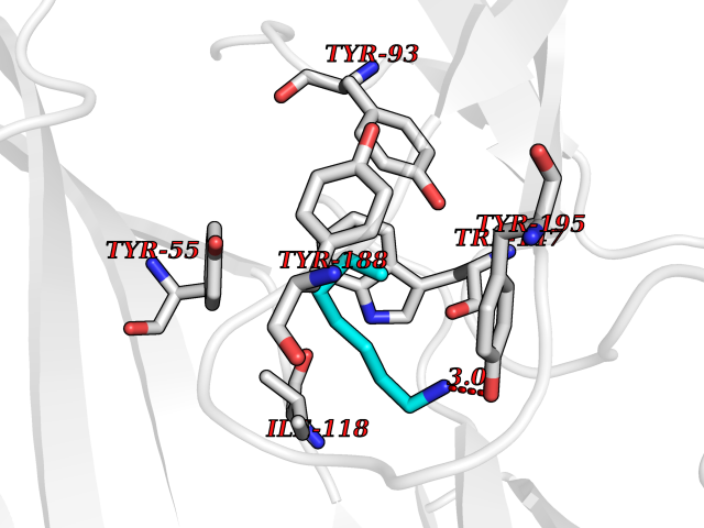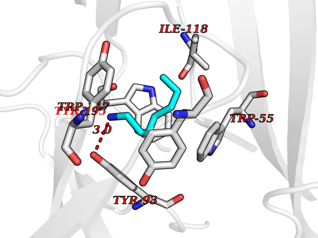 Target general information Gen name Pseudo LasR Organism Pseudomonas aeruginosa (strain ATCC 15692 / DSM 22644 / CIP 104116 / JCM 14847 / LMG 12228 / 1C / PRS 101 / PAO1) Uniprot ID TTD ID Synonyms NA Protein family Autoinducer-regulated transcriptional regulatory protein family Biochemical class NA Function Transcriptional activator of elastase structural gene (LasB). Binds to the PAI autoinducer. Related diseases Growth hormone deficiency, isolated, 1A (IGHD1A) [MIM:262400]: An autosomal recessive, severe deficiency of growth hormone leading to dwarfism. Patients often develop antibodies to administered growth hormone. {ECO:0000269|PubMed:8364549}. The disease is caused by variants affecting the gene represented in this entry.; DISEASE: Growth hormone deficiency, isolated, 1B (IGHD1B) [MIM:612781]: An autosomal recessive deficiency of growth hormone leading to short stature. Patients have low but detectable levels of growth hormone, significantly retarded bone age, and a positive response and immunologic tolerance to growth hormone therapy. {ECO:0000269|PubMed:12655557}. The disease is caused by variants affecting the gene represented in this entry.; DISEASE: Kowarski syndrome (KWKS) [MIM:262650]: A syndrome clinically characterized by short stature associated with bioinactive growth hormone, normal or slightly increased growth hormone secretion, pathologically low insulin-like growth factor 1 levels, and normal catch-up growth on growth hormone replacement therapy. {ECO:0000269|PubMed:17519310, ECO:0000269|PubMed:8552145, ECO:0000269|PubMed:9276733}. The disease is caused by variants affecting the gene represented in this entry.; DISEASE: Growth hormone deficiency, isolated, 2 (IGHD2) [MIM:173100]: An autosomal dominant deficiency of growth hormone leading to short stature. Clinical severity is variable. Patients have a positive response and immunologic tolerance to growth hormone therapy. {ECO:0000269|PubMed:11502836, ECO:0000269|PubMed:9152628}. The disease is caused by variants affecting the gene represented in this entry. Drugs (DrugBank ID) DB08324 Interacts with NA EC number NA Uniprot keywords 3D-structure; Activator; DNA-binding; Quorum sensing; Reference proteome; Transcription; Transcription regulation Protein physicochemical properties Chain ID A Molecular weight (Da) 18305.5 Length 163 Aromaticity 0.12 Instability index 46.52 Isoelectric point 5.19 Charge (pH=7) -6.78 3D Binding mode Sequence FLELERSSGKLEWSAILQKMASDLGFSKILFGLLPKDSQDYENAFIVGNYPAAWREHYDRAGYARVDPTVSHCTQSVLPIFWEPSIYQTRKQHEFFEEASAAGLVYGLTMPLHGARGELGALSLSVEAENRAEANRFMESVLPTLWMLKDYALQSGAGLAFEH Hydrogen bonds contact Hydrophobic contact | ||||