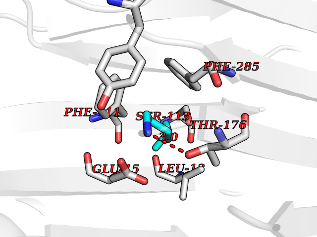 Target general information Gen name cumD Organism Pseudomonas fluorescens Uniprot ID TTD ID NA Synonyms NA Protein family NA Biochemical class Hydrolase Function Hydrolase activity. Related diseases Intellectual developmental disorder, autosomal dominant 62 (MRD62) [MIM:618793]: An autosomal dominant form of intellectual disability, a disorder characterized by significantly below average general intellectual functioning associated with impairments in adaptive behavior and manifested during the developmental period. MRD62 is characterized by mild to moderately impaired intellectual development. {ECO:0000269|PubMed:27479843, ECO:0000269|PubMed:29460436}. The disease is caused by variants affecting the gene represented in this entry. Drugs (DrugBank ID) DB03741; DB03793; DB03568; DB02531; DB03750; DB02406; DB03766 Interacts with NA EC number NA Uniprot keywords 3D-structure; Hydrolase Protein physicochemical properties Chain ID A Molecular weight (Da) 30307.9 Length 271 Aromaticity 0.1 Instability index 37.49 Isoelectric point 5.02 Charge (pH=7) -11.58 3D Binding mode Sequence NLEIGKSILAAGVLTNYHDVGEGQPVILIHGSGPGVSAYANWRLTIPALSKFYRVIAPDMVGFGFTDRPENYNYSKDSWVDHIIGIMDALEIEKAHIVGNAFGGGLAIATALRYSERVDRMVLMGAAGTRFDVTEGLNAVWGYTPSIENMRNLLDIFAYDRSLVTDELARLRYEASIQPGFQESFSSMFPEPRQRWIDALASSDEDIKTLPNETLIIHGREDQVVPLSSSLRLGELIDRAQLHVFGRCGHWTQIEQTDRFNRLVVEFFNEA Hydrogen bonds contact Hydrophobic contact | ||||
