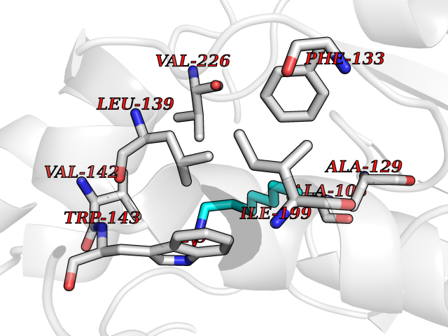 Target general information Gen name HELPY mtnN Organism Helicobacter pylori (strain ATCC 700392 / 26695) (Campylobacter pylori) Uniprot ID TTD ID Synonyms MTAN; MTA/SAH nucleosidase; Aminofutalosine nucleosidase; Aminodeoxyfutalosine nucleosidase; AFL nucleosidase; 6-amino-6-deoxyfutalosine N-ribosylhydrolase; 5'-methylthioadenosine/S-adenosylhomocystei Protein family PNP/UDP phosphorylase family Biochemical class NA Function Catalyzes the direct conversion of aminodeoxyfutalosine (AFL) into dehypoxanthine futalosine (DHFL) and adenine via the hydrolysis of the N-glycosidic bond; this reaction seems to represent an essential step in the menaquinone biosynthesis pathway in Helicobacter species. Can also probably catalyzes the hydrolysis of 5'-methylthioadenosine (MTA) and S-adenosylhomocysteine (SAH) to adenine and the corresponding thioribose, 5'-methylthioribose and S-ribosylhomocysteine, respectively. These other activities highlight the tremendous versatility of the enzyme, which also plays key roles in S-adenosylmethionine recycling and in the biosynthesis of the quorum-sensing molecule autoinducer-2. Does not act on futalosine (FL) as substrate. Related diseases Progressive familial heart block 1B (PFHB1B) [MIM:604559]: A cardiac bundle branch disorder characterized by progressive alteration of cardiac conduction through the His-Purkinje system, with a pattern of a right bundle-branch block and/or left anterior hemiblock occurring individually or together. It leads to complete atrio-ventricular block causing syncope and sudden death. {ECO:0000269|PubMed:19726882, ECO:0000269|PubMed:20562447, ECO:0000269|PubMed:21887725}. The disease is caused by variants affecting the gene represented in this entry.; DISEASE: Erythrokeratodermia variabilis et progressiva 6 (EKVP6) [MIM:618531]: A form of erythrokeratodermia variabilis et progressiva, a genodermatosis characterized by the coexistence of two independent skin lesions: transient erythema and hyperkeratosis that is usually localized but occasionally occurs in its generalized form. Clinical presentation varies significantly within a family and from one family to another. Palmoplantar keratoderma is present in around 50% of cases. EKVP6 inheritance is autosomal dominant. {ECO:0000269|PubMed:30528822}. The disease is caused by variants affecting the gene represented in this entry. Drugs (DrugBank ID) NA Interacts with NA EC number NA Uniprot keywords 3D-structure; Amino-acid biosynthesis; Hydrolase; Menaquinone biosynthesis; Methionine biosynthesis; Reference proteome Protein physicochemical properties Chain ID A,B Molecular weight (Da) 50547.6 Length 464 Aromaticity 0.08 Instability index 26.92 Isoelectric point 5.13 Charge (pH=7) -20.92 3D Binding mode Sequence VQKIGILGAMREEITPILELFGVDFEEIPLGGNVFHKGVYHNKEIIVAYSKIGKVHSTLTTTSMILAFGVQKVLFSGVAGSLVKDLKINDLLVAIQLVQHDVDLSAFDHPLGFIPESAIFIETSESLNALAKEVANEQHIVLKEGVIASGDQFVHSKERKEFLVSEFKASAVEMEGASVAFVCQKFGVPCCVLRSISNNADEEANMSFDAFLEKSAQTSAKFLKSMVDELGSHMVQKIGILGAMREEITPILELFGVDFEEIPLGGNVFHKGVYHNKEIIVAYSKIGKVHSTLTTTSMILAFGVQKVLFSGVAGSLVKDLKINDLLVAIQLVQHDVDLSAFDHPLGFIPESAIFIETSESLNALAKEVANEQHIVLKEGVIASGDQFVHSKERKEFLVSEFKASAVEMEGASVAFVCQKFGVPCCVLRSISNNADEEANMSFDAFLEKSAQTSAKFLKSMVDEL Hydrogen bonds contact Hydrophobic contact | ||||