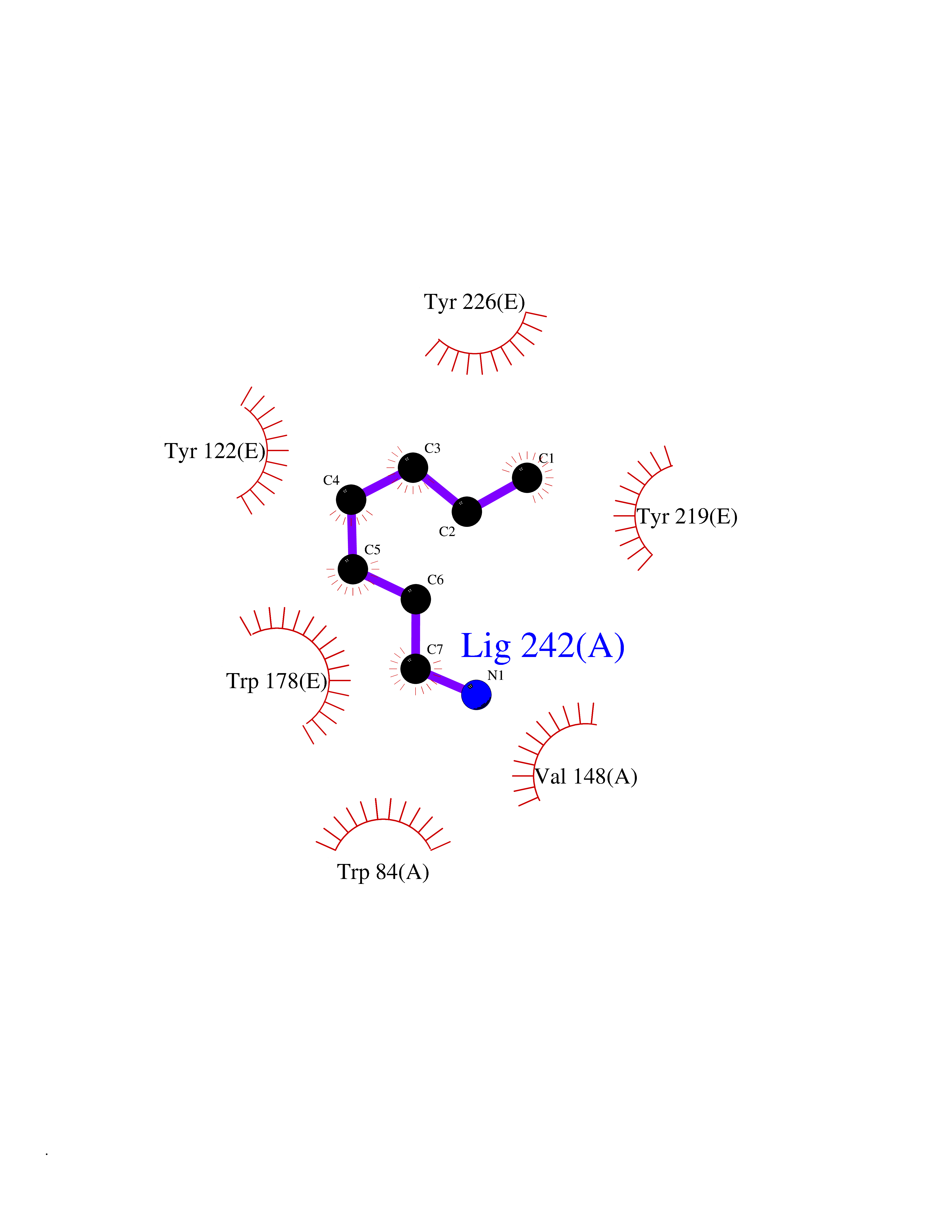 Target general information Gen name CHRNA2 Organism Homo sapiens (Human) Uniprot ID TTD ID NA Synonyms NA Protein family Ligand-gated ion channel (TC 1.A.9) family, Acetylcholine receptor (TC 1.A.9.1) subfamily, Alpha-2/CHRNA2 sub-subfamily Biochemical class NA Function After binding acetylcholine, the AChR responds by an extensive change in conformation that affects all subunits and leads to opening of an ion-conducting channel across the plasma membrane." Related diseases Epilepsy, nocturnal frontal lobe, 4 (ENFL4) [MIM:610353]: An autosomal dominant focal epilepsy characterized by nocturnal seizures associated with fear sensation, tongue movements, and nocturnal wandering, closely resembling nightmares and sleep walking. {ECO:0000269|PubMed:16826524}. The disease is caused by variants affecting the gene represented in this entry.; DISEASE: Seizures, benign familial infantile, 6 (BFIS6) [MIM:610353]: A form of benign familial infantile epilepsy, a neurologic disorder characterized by afebrile seizures occurring in clusters during the first year of life, without neurologic sequelae. BFIS6 inheritance is autosomal dominant. {ECO:0000269|PubMed:25847220}. The disease may be caused by variants affecting the gene represented in this entry. Drugs (DrugBank ID) DB00732; DB00237; DB00411; DB00565; DB01245; DB00514; DB01135; DB07720; DB00898; DB00472; DB00483; DB08960; DB00657; DB01336; DB00416; DB01226; DB00184; DB01337; DB01338; DB00721; DB00728; DB05740; DB00202; DB01199; DB01339 Interacts with NA EC number NA Uniprot keywords 3D-structure; Alternative splicing; Cell membrane; Disease variant; Disulfide bond; Epilepsy; Glycoprotein; Ion channel; Ion transport; Ligand-gated ion channel; Membrane; Postsynaptic cell membrane; Proteomics identification; Receptor; Reference proteome; Signal; Synapse; Transmembrane; Transmembrane helix; Transport Protein physicochemical properties Chain ID A,B,C,D,E Molecular weight (Da) 120584 Length 1031 Aromaticity 0.14 Instability index 32.21 Isoelectric point 5.62 Charge (pH=7) -17.58 3D Binding mode Sequence DRLFKHLFRGYNRWARPVPNTSDVVIVRFGLSIAQLIDVDEKNQMMTTNVWLKQEWSDYKLRWNPTDFGNITSLRVPSEMIWIPDIVLYNNADGEFAVTHMTKAHLFSTGTVHWVPPAIYKSSCSIDVTFFPFDQQNCKMKFGSWTYDKAKIDLEQMEQTVDLKDYWESGEWAIVNATGTYNSKKYDCCAEIYPDVTYAFVIRRLPEDRLFKHLFRGYNRWARPVPNTSDVVIVRFGLSIAQLIDVDEKNQMMTTNVWLKQEWSDYKLRWNPTDFGNITSLRVPSEMIWIPDIVLYNNADGEFAVTHMTKAHLFSTGTVHWVPPAIYKSSCSIDVTFDQQNCKMKFGSWTYDKAKIDLEQMEQTVDLKDYWESGEWAIVNATGTYNSKKYDCCAEIYPDVTYAFVIRRLPEDRLFKHLFRGYNRWARPVPNTSDVVIVRFGLSIAQLIDVDEKNQMMTTNVWLKQEWSDYKLRWNPTDFGNITSLRVPSEMIWIPDIVLYNNADGEFAVTHMTKAHLFSTGTVHWVPPAIYKSSCSIDVTFFPFDQQNCKMKFGSWTYDKAKIDLEQMEQTVDLKDYWESGEWAIVNATGTYNSKKYDCCAEIYPDVTYAFVIRRLPEDRLFKHLFRGYNRWARPVPNTSDVVIVRFGLSIAQLIDVDEKNQMMTTNVWLKQEWSDYKLRWNPTDFGNITSLRVPSEMIWIPDIVLYNNADGEFAVTHMTKAHLFSTGTVHWVPPAIYKSSCSIDVTFFPFDQQNCKMKFGSWTYDKAKIDLEQMEQTVDLKDYWESGEWAIVNATGTYNSKKYDCCAEIYPDVTYAFVIRRLPEDRLFKHLFRGYNRWARPVPNTSDVVIVRFGLSIAQLIDVDEKNQMMTTNVWLKQEWSDYKLRWNPTDFGNITSLRVPSEMIWIPDIVLYNNADGEFAVTHMTKAHLFSTGTVHWVPPAIYKSSCSIDVTFFPFDQQNCKMKFGSWTYDKAKIDLEQMEQTVDLKDYWESGEWAIVNATGTYNSKKYDCCAEIYPDVTYAFVIRRLP Hydrogen bonds contact Hydrophobic contact | ||||