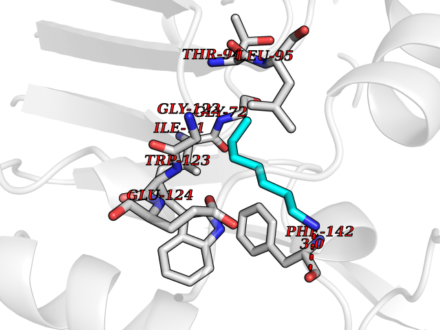 Target general information Gen name GHRL Organism Homo sapiens (Human) Uniprot ID TTD ID Synonyms UNQ524/PRO1066; Motilin-related peptide; M46 protein; Growth hormone secretagogue; Growth hormone releasing peptide; Gastric peptide ghrelin; GHRL Protein family Motilin family Biochemical class NA Function Specific ligand for the growth hormone secretagogue receptor type 1 (ghsr) inducing the release of growth hormone from the pituitary. Has an appetite-stimulating effect, induces adiposity and stimulates gastric acid secretion.Involved in growth regulation. Related diseases Neurodevelopmental disorder with structural brain anomalies and dysmorphic facies (NEDBAF) [MIM:618577]: An autosomal dominant neurodevelopmental disorder characterized by global developmental delay, severe intellectual disability, poor language, seizures, dysmorphic features, and thin corpus callosum. {ECO:0000269|PubMed:29276006, ECO:0000269|PubMed:30293988}. The disease is caused by variants affecting the gene represented in this entry. Drugs (DrugBank ID) NA Interacts with Q9UMX0; Q9UMX0-2; Q9UHD9 EC number NA Uniprot keywords 3D-structure; Alternative splicing; Amidation; Direct protein sequencing; Hormone; Lipoprotein; Proteomics identification; Reference proteome; Secreted; Signal Protein physicochemical properties Chain ID C,R Molecular weight (Da) 34053.1 Length 300 Aromaticity 0.14 Instability index 38.34 Isoelectric point 9.3 Charge (pH=7) 11.02 3D Binding mode Sequence GSSFLSPEHQRVQQRLQLFPAPLLAGVTATCVALFVVGIAGNLLTMLVVSRFRELRTTTNLYLSSMAFSDLLIFLCMPLDLVRLWQYRPWNFGDLLCKLFQFVSESCTYATVLTITALSVERYFAICFPLRAKVVVTKGRVKLVIFVIWAVAFCSAGPIFVLVGVEHENGTDPWDTNECRPTEFAVRSGLLTVMVWVSSIFFFLPVFCLTVLYSLIGRKLWRNHKQTVKMLAVVVFAFILCWLPFHVGRYLFSKSFEPGSLEIAQISQYCNLVSFVLFYLSAAINPILYNIMSKKYRVAV Hydrogen bonds contact Hydrophobic contact | ||||