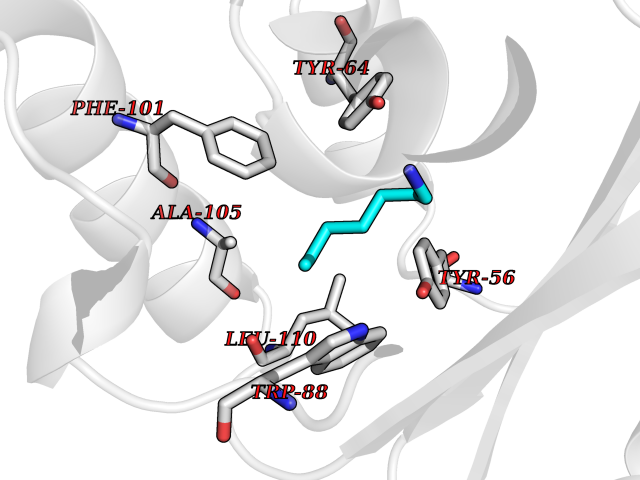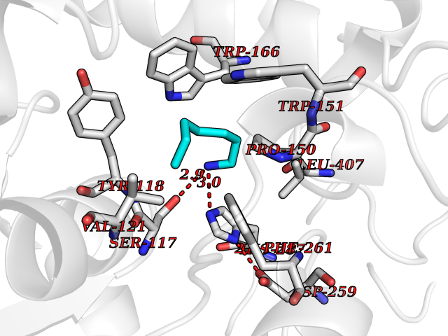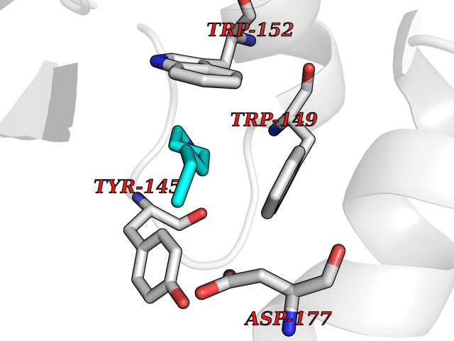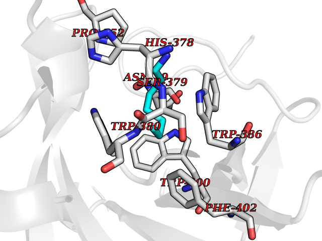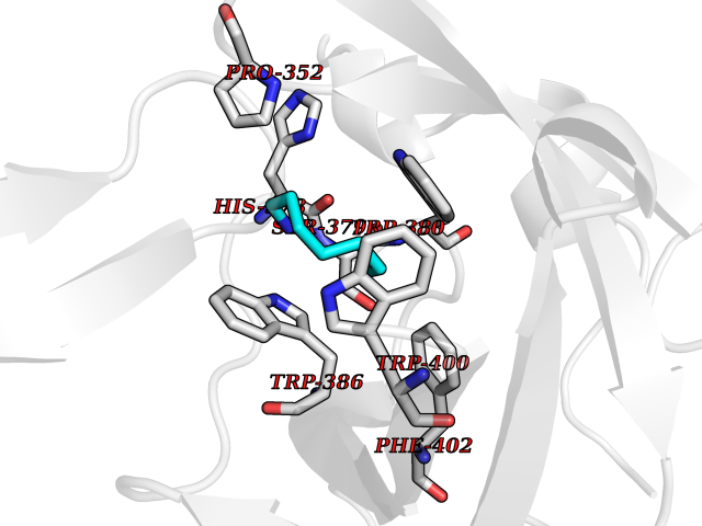 Target general information Gen name cocE Organism Rhodococcus sp. (strain MB1 Bresler) Uniprot ID TTD ID NA Synonyms NA Protein family CocE/NonD hydrolase family Biochemical class Hydrolase Function Carboxylic ester hydrolase activity.Dipeptidyl-peptidase activity. Related diseases Thiamine metabolism dysfunction syndrome 5, episodic encephalopathy type (THMD5) [MIM:614458]: An autosomal recessive metabolic disorder due to an inborn error of thiamine metabolism. The phenotype is highly variable, but in general, affected individuals have onset in early childhood of acute encephalopathic episodes associated with increased serum and CSF lactate. These episodes result in progressive neurologic dysfunction manifest as gait disturbances, ataxia, dystonia, and spasticity, which in some cases may result in loss of ability to walk. Cognitive function is usually preserved, although mildly delayed development has been reported. These episodes are usually associated with infection and metabolic decompensation. Some patients may have recovery of some neurologic deficits. {ECO:0000269|PubMed:22152682}. The disease is caused by variants affecting the gene represented in this entry. Drugs (DrugBank ID) DB03793; DB01795 Interacts with NA EC number 3.1.1.84 Uniprot keywords 3D-structure; Cytoplasm; Direct protein sequencing; Hydrolase; Serine esterase Protein physicochemical properties Chain ID A Molecular weight (Da) 62127.9 Length 574 Aromaticity 0.09 Instability index 26.62 Isoelectric point 4.56 Charge (pH=7) -33.24 3D Binding mode Sequence VDGNYSVASNVMVPMRDGVRLAVDLYRPDADGPVPVLLVRNPYDKFDVFAWSTQSTNWLEFVRDGYAVVIQDTRGLFASEGEFVPHVDDEADAEDTLSWILEQAWCDGNVGMFGVSYLGVTQWQAAVSGVGGLKAIAPSMASADLYRAPWYGPGGALSVEALLGWSALIGTGLITSRSDARPEDAADFVQLAAILNDVAGAASVTPLAEQPLLGRLIPWVIDQVVDHPDNDESWQSISLFERLGGLATPALITAGWYDGFVGESLRTFVAVKDNADARLVVGPWSHSNLTGRNADRKFGIAATYPIQEATTMHKAFFDRHLRGETDALAGVPKVRLFVMGIDEWRDETDWPLPDTAYTPFYLGGSGAANTSTGGGTLSTSISGTESADTYLYDPADPVPSLGGTLLFHNGDNGPADQRPIHDRDDVLCYSTEVLTDPVEVTGTVSARLFVSSSAVDTDFTAKLVDVFPDGRAIALCDGIVRMRYRETLVNPTLIEAGEIYEVAIDMLATSNVFLPGHRIMVQVSSSNFPKYDRNSNTGGVIAREQLEEMCTAVNRIHRGPEHPSHIVLPIIKRK Hydrogen bonds contact Hydrophobic contact | ||||