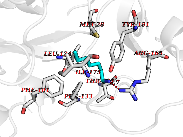 Target general information Gen name mmaA2 Organism Mycobacterium tuberculosis (strain ATCC 25618 / H37Rv) Uniprot ID TTD ID NA Synonyms Rv0644c;mma2 Protein family CFA/CMAS family Biochemical class Transferase Function Cyclopropane-fatty-acyl-phospholipid synthase activity.Methyltransferase activity. Related diseases Oocyte/zygote/embryo maturation arrest 16 (OZEMA16) [MIM:617234]: A rare cause of female primary infertility. In affected women, ovulation and fertilization proceed normally but embryos are arrested at early stages of development. Inheritance is autosomal recessive. {ECO:0000269|PubMed:27545678}. The disease is caused by variants affecting the gene represented in this entry. Drugs (DrugBank ID) DB01718; DB01752 Interacts with NA EC number 2.1.1.79 Uniprot keywords 3D-structure; Acetylation; Lipid biosynthesis; Lipid metabolism; Methyltransferase; Reference proteome; S-adenosyl-L-methionine; Transferase Protein physicochemical properties Chain ID A Molecular weight (Da) 32493.6 Length 285 Aromaticity 0.1 Instability index 43.61 Isoelectric point 5.53 Charge (pH=7) -10.17 3D Binding mode Sequence NDLTPHFEDVQAHYDLSDDFFRLFLDPTQTYSCAHFEREDMTLEEAQIAKIDLALGKLGLQPGMTLLDIGCGWGATMRRAIAQYDVNVVGLTLSKNQAAHVQKSFDEMDTPRDRRVLLAGWEQFNEPVDRIVSIGAFEHFGHDRHADFFARAHKILPPDGVLLLHTITGLTRQQMVDHGLPLTLWLARFLKFIATEIFPGGQPPTIEMVEEQSAKTGFTLTRRQSLQPHYARTLDLWAEALQEHKSEAIAIQSEEVYERYMKYLTGCAKLFRVGYIDVNQFTLAK Hydrogen bonds contact Hydrophobic contact | ||||