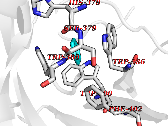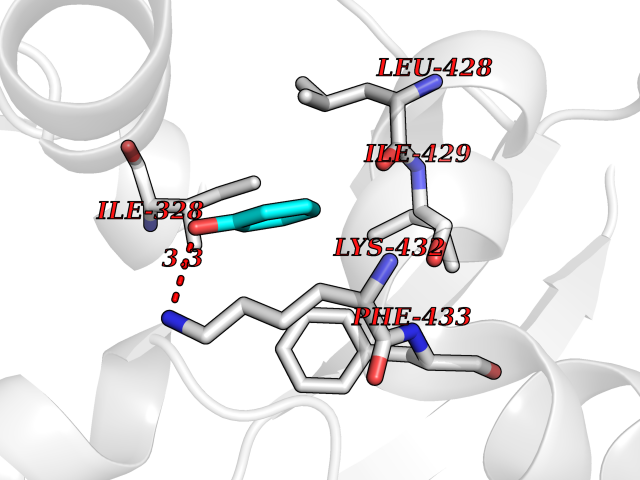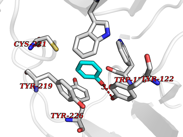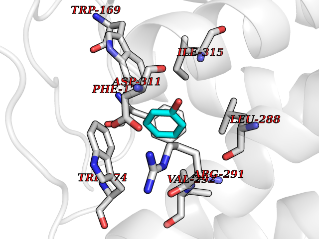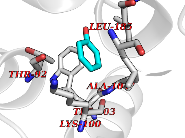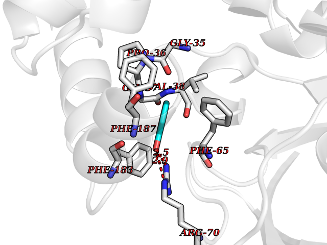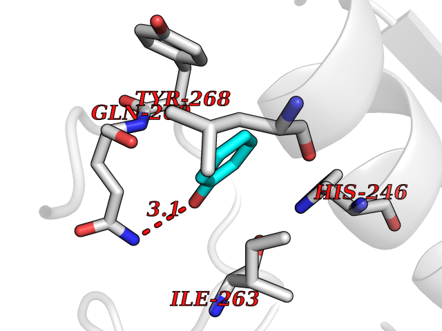 Target general information Gen name cpo Organism Kitasatospora aureofaciens (Streptomyces aureofaciens) Uniprot ID TTD ID NA Synonyms cpoT Protein family AB hydrolase superfamily, Bacterial non-heme haloperoxidase / perhydrolase family Biochemical class Haloperoxidase Function Chloride peroxidase activity. Related diseases Hypervalinemia and hyperleucine-isoleucinemia (HVLI) [MIM:618850]: An autosomal recessive metabolic disorder characterized by highly elevated plasma concentrations of valine and leucine/isoleucine. Affected individuals suffer from headache and mild memory impairment. {ECO:0000269|PubMed:25653144}. The disease is caused by variants affecting the gene represented in this entry. A patient with hypervalinemia and hyperleucine-isoleucinemia was identified as compound heterozygote for Gln-170 (inherited from his father) and Lys-264 (inherited from his mother), both variants reduced the catalytic activity of the enzyme. After treatment with vitamin B6, a precursor of pyridoxal 5'-phosphate, a BCAT2 cofactor, the blood levels of branched chain amino acids, especially valine, were decreased and brain lesions were improved. {ECO:0000269|PubMed:25653144}. Drugs (DrugBank ID) DB03793 Interacts with NA EC number 1.11.1.- Uniprot keywords 3D-structure; Chloride; Oxidoreductase; Peroxidase Protein physicochemical properties Chain ID A,B Molecular weight (Da) 60428.4 Length 554 Aromaticity 0.13 Instability index 31.26 Isoelectric point 4.65 Charge (pH=7) -32.72 3D Binding mode Sequence PFITVGQENSTSIDLYYEDHGAGQPVVLIHGFPLSGHSWERQSAALLDAGYRVITYDRRGFGQSSQPTTGYDYDTFAADLNTVLETLDLQDAVLVGFSMGTGEVARYVSSYGTARIAKVAFLASLEPFLLKTDDNPDGAAPKEFFDGIVAAVKADRYAFYTGFFNDFYNLDENLGTRISEEAVRNSWNTAASGGFFAAAAAPTTWYTDFRADIPRIDVPALILHGTGDRTLPIENTARVFHKALPSAEYVEVEGAPHGLLWTHAEEVNTALLAFLAKPFITVGQENSTSIDLYYEDHGAGQPVVLIHGFPLSGHSWERQSAALLDAGYRVITYDRRGFGQSSQPTTGYDYDTFAADLNTVLETLDLQDAVLVGFSMGTGEVARYVSSYGTARIAKVAFLASLEPFLLKTDDNPDGAAPKEFFDGIVAAVKADRYAFYTGFFNDFYNLDENLGTRISEEAVRNSWNTAASGGFFAAAAAPTTWYTDFRADIPRIDVPALILHGTGDRTLPIENTARVFHKALPSAEYVEVEGAPHGLLWTHAEEVNTALLAFLAK Hydrogen bonds contact Hydrophobic contact | ||||